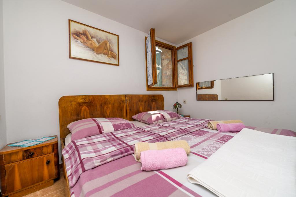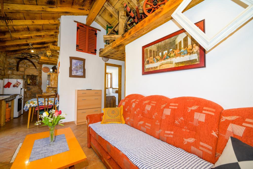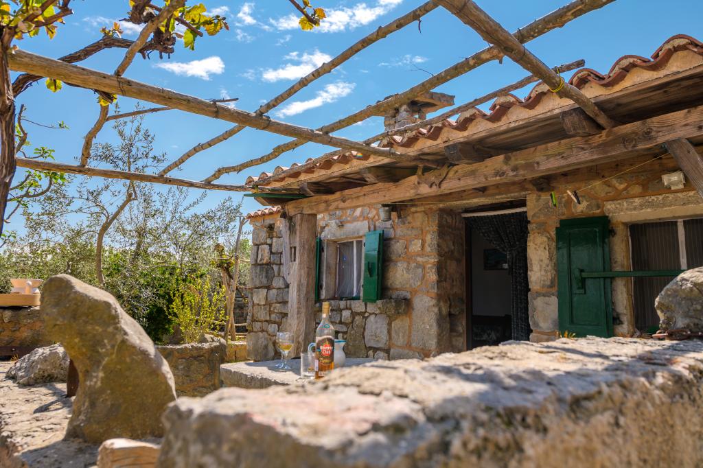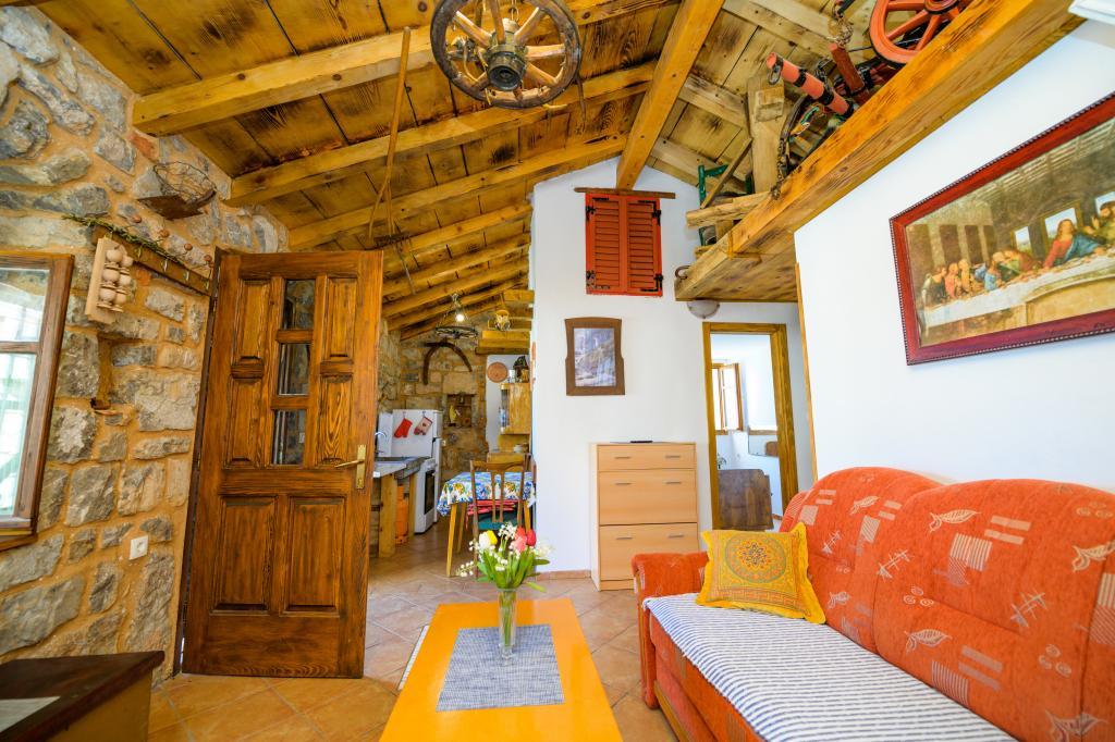 Starinska kućica jako lijepo uređena od kamena i drva. Imate svoj parking, svoj grill veliku terasu i ogromno dvorište. U blizini kućice se nalazi park za djecu. Plaže su lijepe i nema previše ljudi.