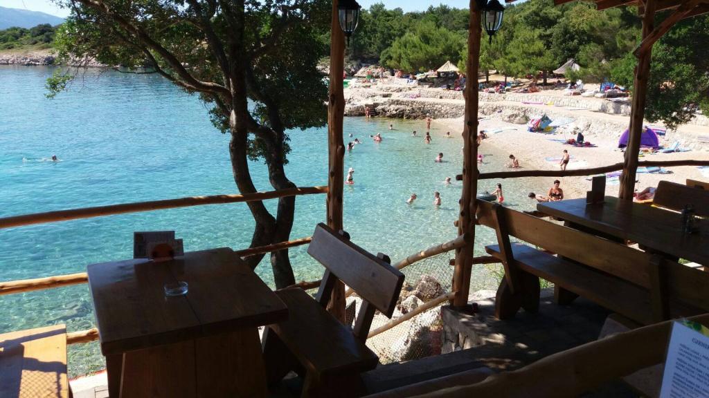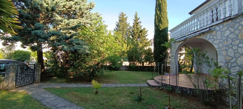 Na Krku u Pinezićima iznajmljujemo kuću pogodnu za 2 obitelji ili do 8 osoba. Ima 3 spavaće sobe, 2 terase, veliki ograđeni vrt, klima uređaj, vlastiti roštilj, parkirno mjesto, podrum. Plaža Jert udaljena je 10-tak minuta piješke i ima obilje prirodnog hlada, šljunčani ulaz u more i dva beach bara s ponudom hrane i pića. U okolici su divlje plaže dostupne i pješice.
