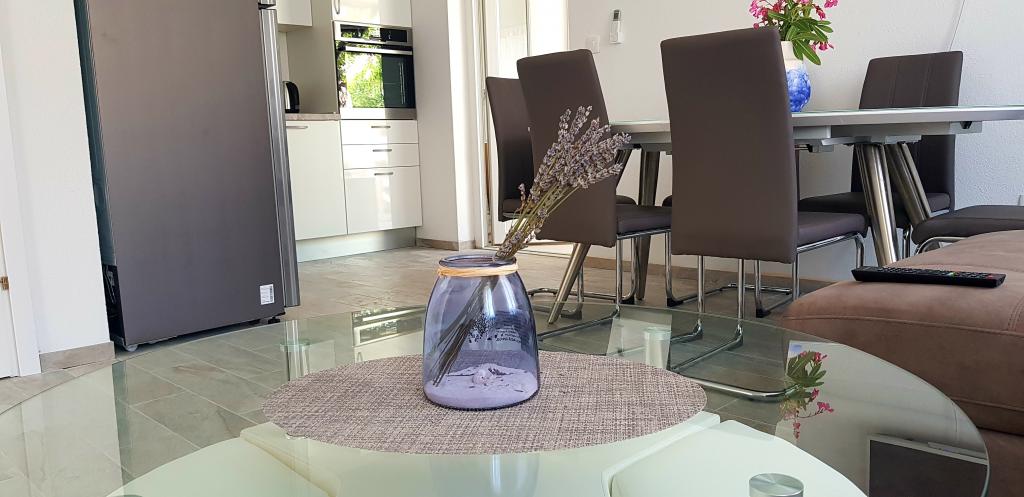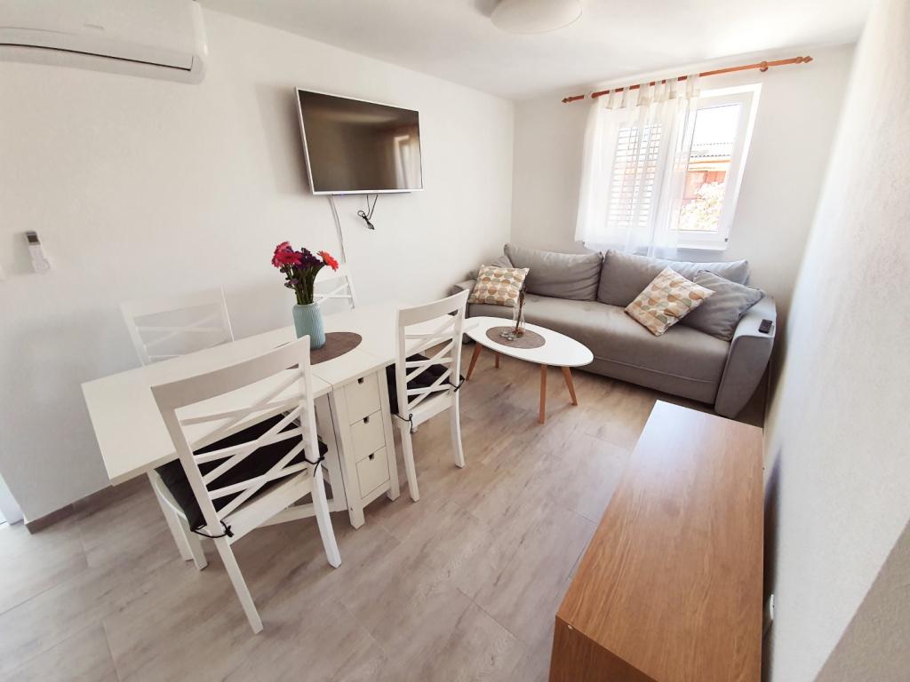 Turistička pristojba nije uključena u cijenu. Šaljemo pismenu potvrdu rezervacije (voucher)Gostima su na raspolaganju dva bicikla veličine M i dva bicikla veličine L bilo za višednevni najam (uz naplatu) bilo za jednokratno korištenje (bez naplate). Svaki apartman ima osigurano parkirno mjesto ispred kuće. Svaki apartman je opremljen s nužnim kupaonskim i kuhinjskim sadržajem ( tekući sapun, gel za tuširanje, osvježivač, toalet papir, tablete za perilicu suđa, spuživca i sredstvo za ručno pranje suđa, maslinovo ulje, začini).