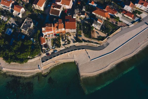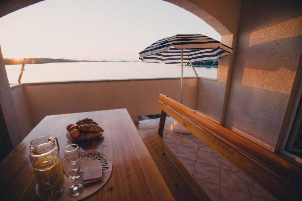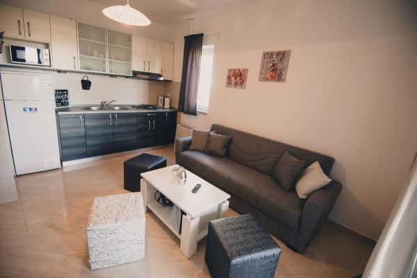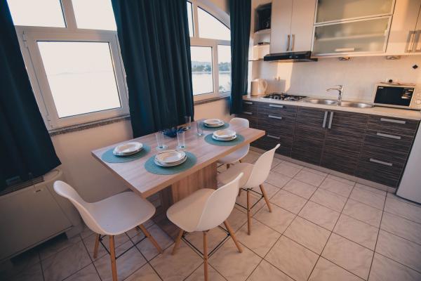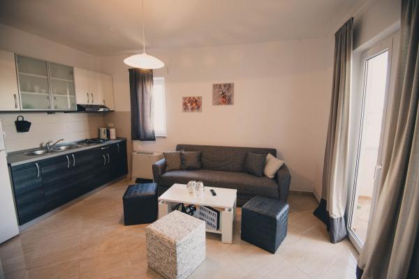 Kompletno opremljeni i uređeni apartmani u kući, prvi red do mora. Objekt se nalazi 5 minuta hoda od centra, restorana, kafića. Plaža je šljunčana i pogodna je za malu djecu. Za sve apartmane je osiguran parking. U cijenu su uključene takse, klima, wifi.