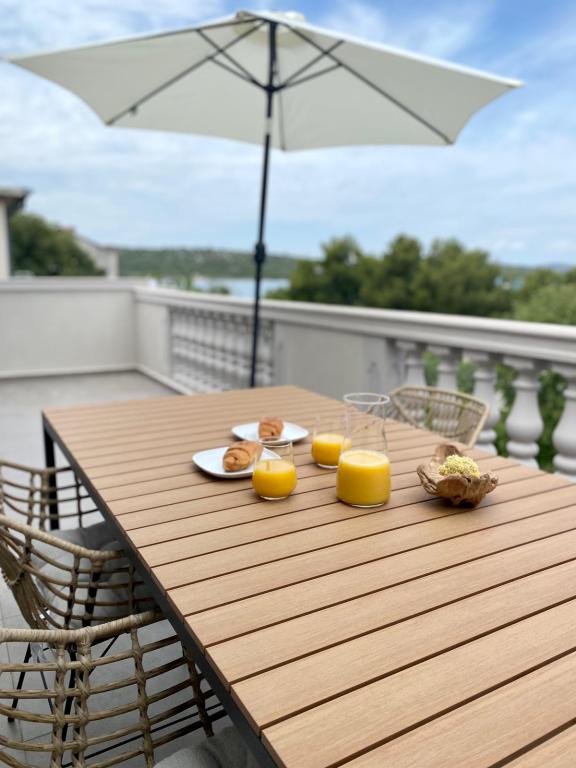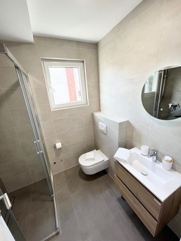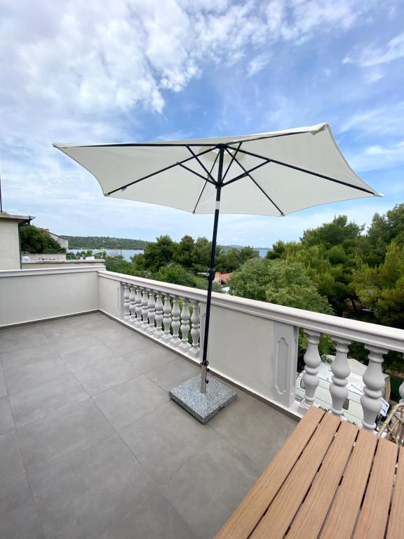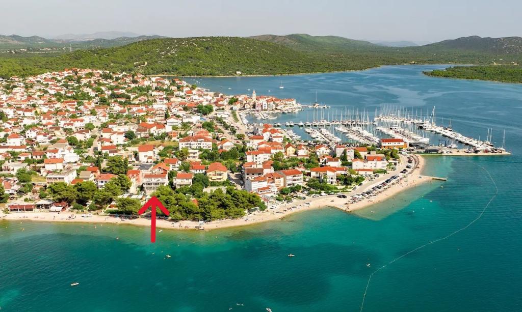 Apartman čist, moderan, velika terasa s direktnim pogledom na more. Stvarno samo kratka šetnja do mora, cca 2-3 minute, do grada max. Bili smo dvije obitelji, tako da su 2 stana jedan do drugog na 2. katu bila idealna. Po potrebi vlasnici su bili na raspolaganju i sve se rješavalo odmah. Mogu samo preporučiti, ugodno proveden odmor