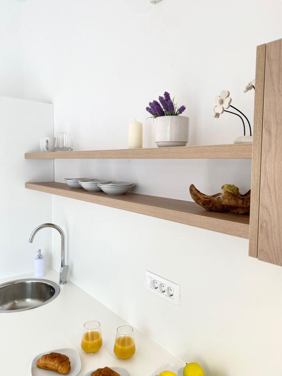 Novouređenim apartmanima, iako smještenima svega par minuta hoda do plaže i centra mjesta, borova šuma ispred velikih terasa osigurava mir, miris mora i zvuk cvrčka. Prirodni i prozračni materijali, prisutni kroz cijeli interijer, pridonose umirujućem ambijentu. Jednostavnost prostora, drvo i pletiva čine prostor ugodnim. Pritom su apartmani suvremeno opremljeni, omogućujući gostu potpuno opuštanje i pravi osjećaj odmora.