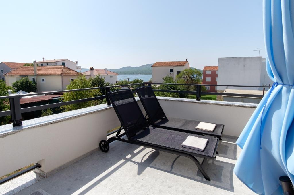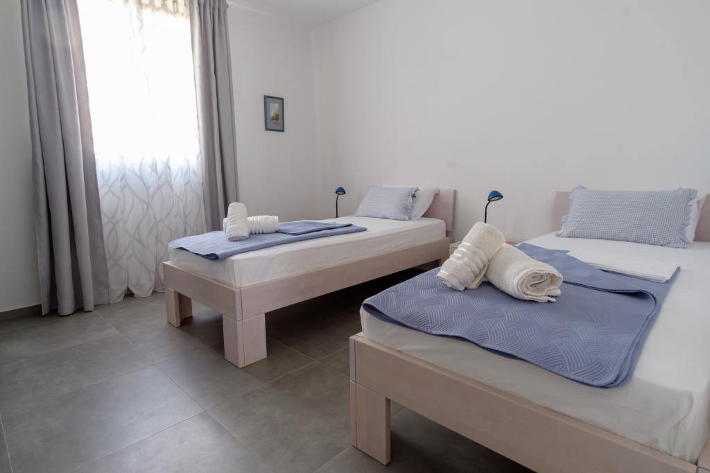 Potpuno nova kuća sa odlično opremljenim apartmanima odmah kraj starog centra grada, smještena na kraju mirne ulice. Najbliža plaža je udaljena svega 2 minute hoda, a do centra ima 200-injak metara. U kući se nalaze 3 apartmana, potpuno nova i moderno opremljena. Apartmani imaju terasu s pogledom na vrt i more. Svi apartmani su opremljeni kuhinjom, klima uređajem, velikim televizorom s uslugama streaminga (Netflix), perilicom posuđa, aparatom za kavu. Svaki apartman ima privatnu kupaonicu i besplatni WiFi, veliki apartman ima dvije kupaonice. Kuća ima svoj parking koji je besplatan za goste. Plaža sa tušom i wc-om je na 50 metara od apartmana. Gostima također nudimo na korištenje plinski roštilj.