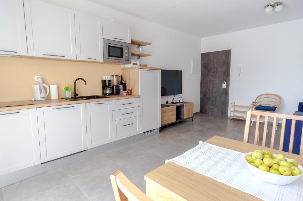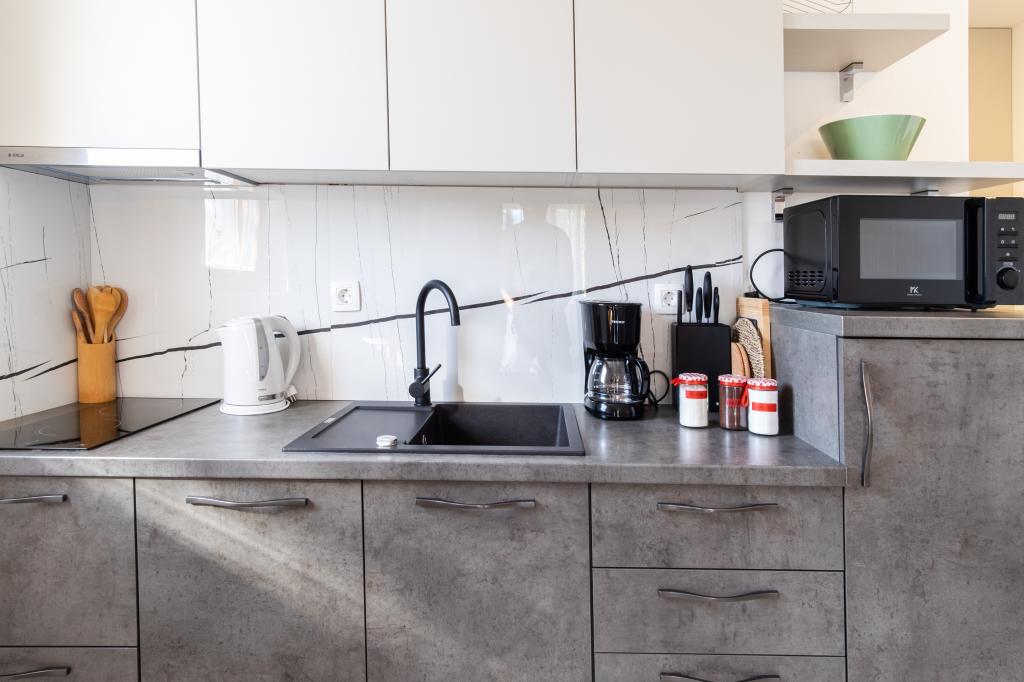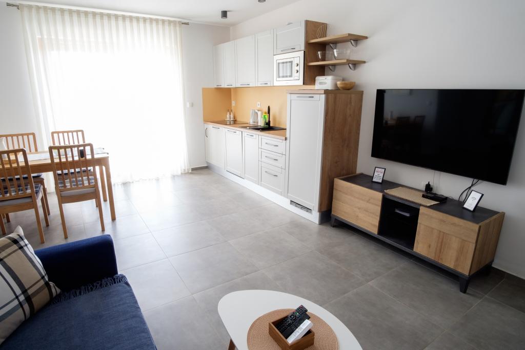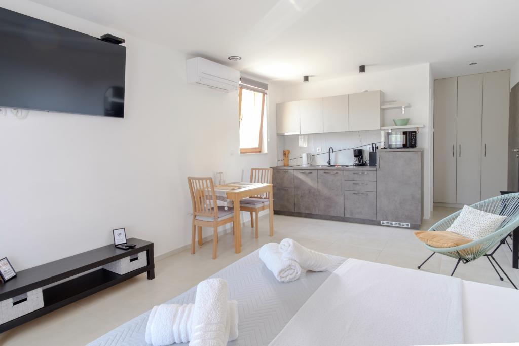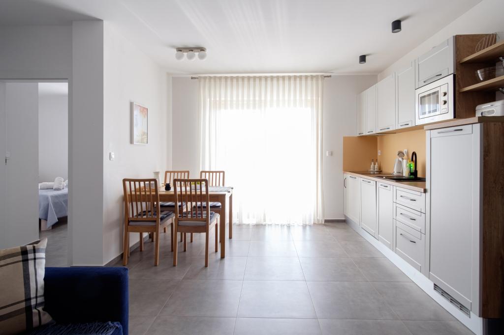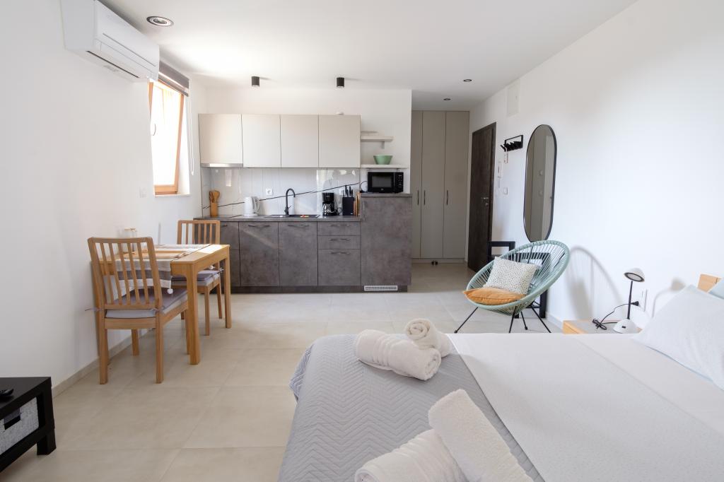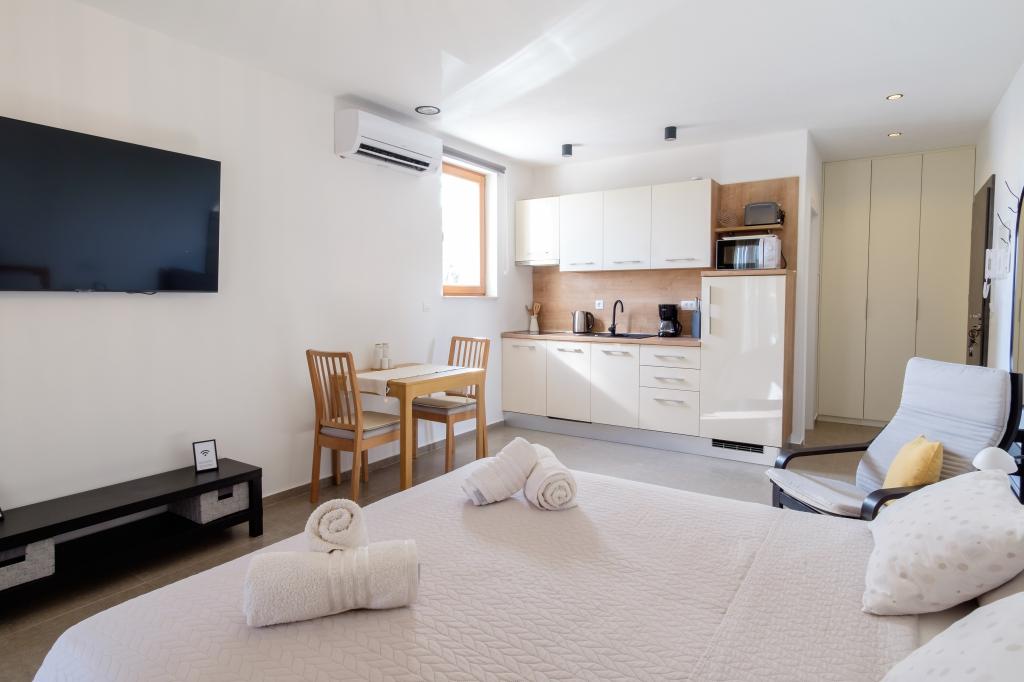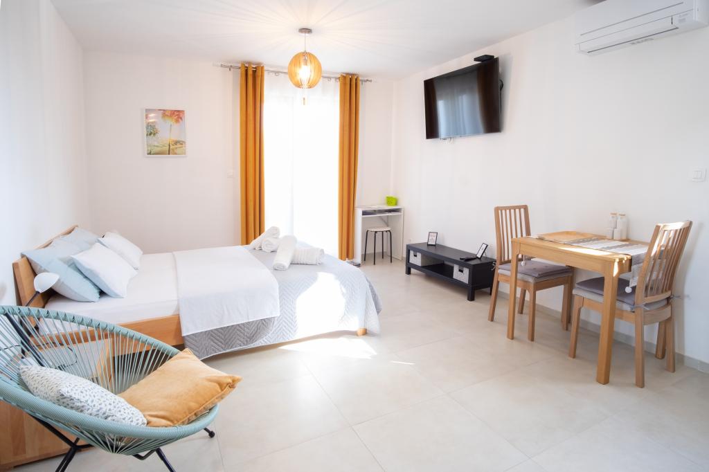 Studio apartman iznimno uredan, pažnja posvećena na svaki detalj, apsolutno ništa nije falilo, sve što poželiš nađeš unutra. Terasa prostrana, tenda napravljena točno na mjestu da napravi hlad za stolom i može se jesti na terasi. Bili smo s dvoje male djece i bilo nam je dovoljno bez obzira na to što je studio apartman. Plaža na minutu, na plaži se nađe i hlada, kafić na plaži direktno. Susjedstvo mirno, centar je blizu, restorani, pekare, dućani, slastičarne... Preporuke za apartmane i samo mjesto!