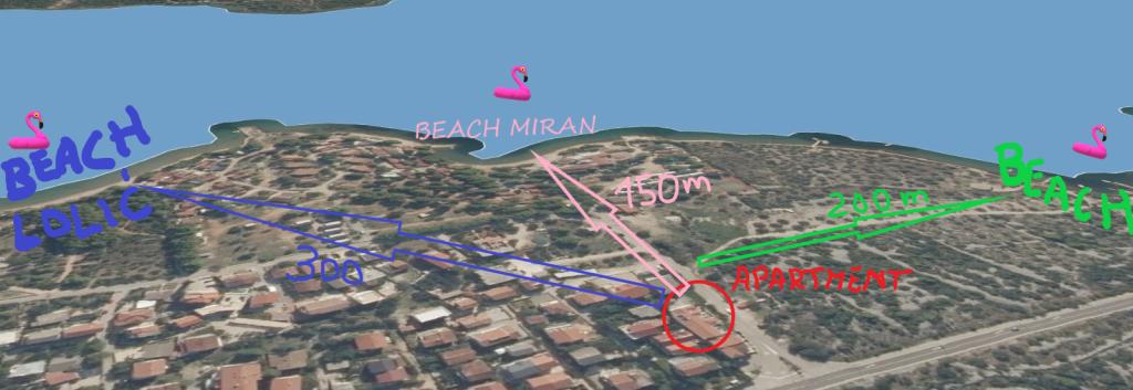 Predivan pogled na more i zalazak sa terase Vašeg apartmana. Doslovno 1 minuta hoda do uređene šljunčane plaže sa prirodnim hladom. Plažom se prema jugoistoku dođe do centra mjesta. Udaljenost do centra Pirovca je oko 1000m (15 min hoda). Nalazimo se na zapadnom dijelu mjesta Pirovac kod samog ulaza u kamp Miran. Kuća je sagrađena 1982. g. , a apartmani su renovirani 2018. godine. Pružamo gostima pristojan, čist i uredan smještaj sa predivni pogledom na more i zalazak za korektnu cijenu. Nema luksuza kao u apartmanima sa 4 zvjezdice ali dobivamo bodove u kategoriji "vrijednost za novac" (value for money). Kućni ljubimci nisu dozvoljeni. Kuća je u blizini Nacionalnih parkova, Kornati i Krka, a svega 5 kilometara od Parka prirode Vransko jezero. Blaga klima, prekrasne uvale, šljunčane plaže s prirodnim hladom stoljetnih borova, toplo more, čudesni zalasci jedinstveni su užici i doživljaji za sve posjetitelje Pirovca koji je oduvijek bio mjesto za odmor privilegiranih