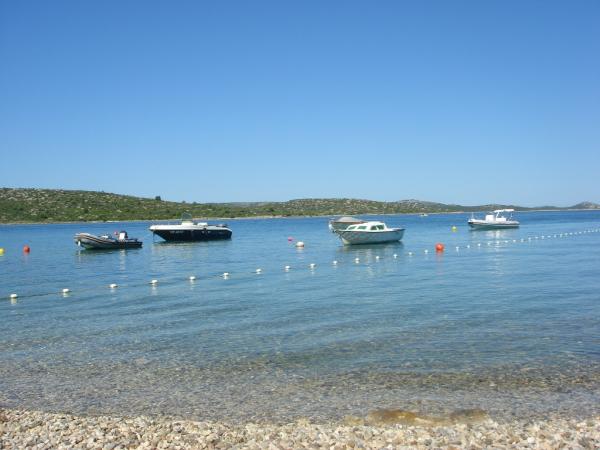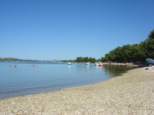 Apartmani su opremljeni osnovnim potrepštinama. Kuća je smještena u mirnijem kvartu. Do glavne plaže ima 2 - 3 minute, a do centra 10 minuta hoda. Plaža je nositelj plave zastave, ima puno borove šume i pogodna je za djecu. Najbliža trgovina smještena je samo 1 - 2 minute hoda od apartmana. Parkirna mjesta su u prirodnom hladu, kao i terase.