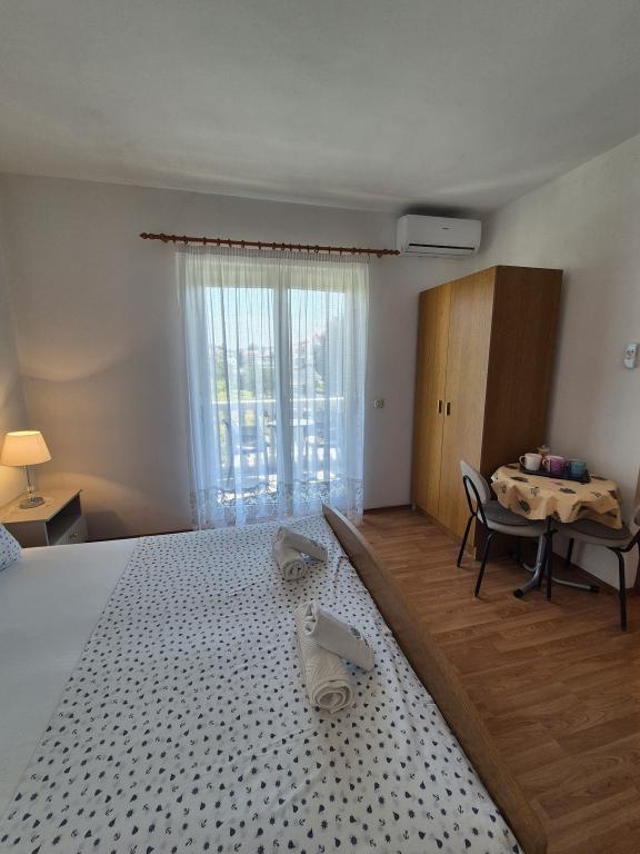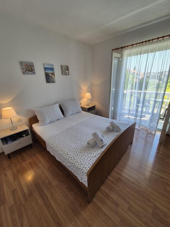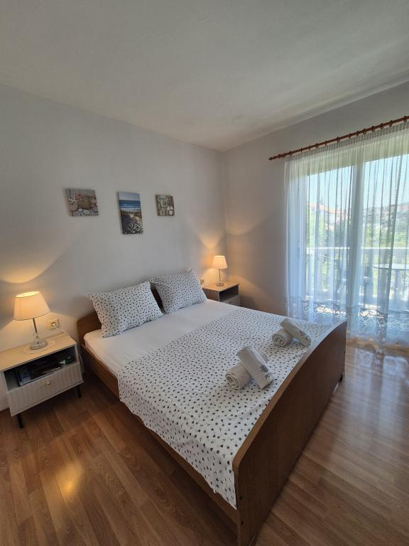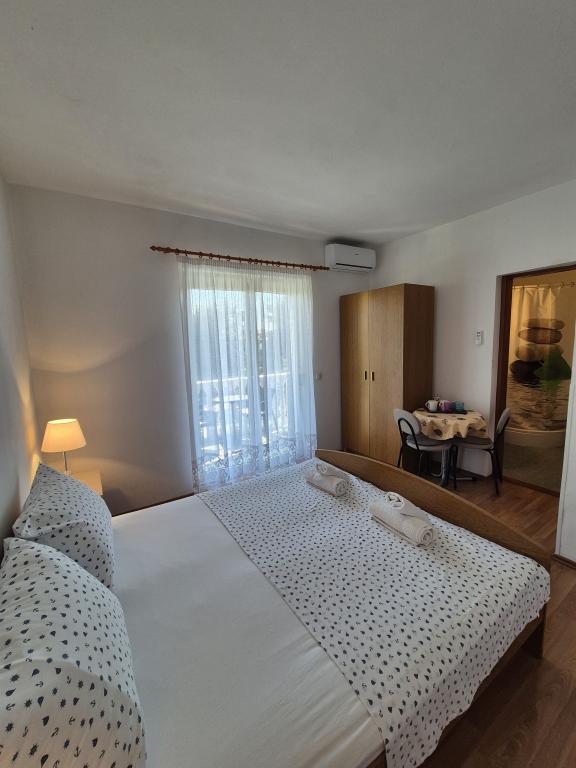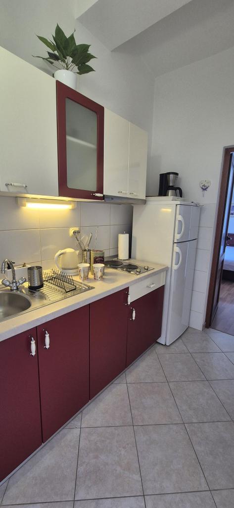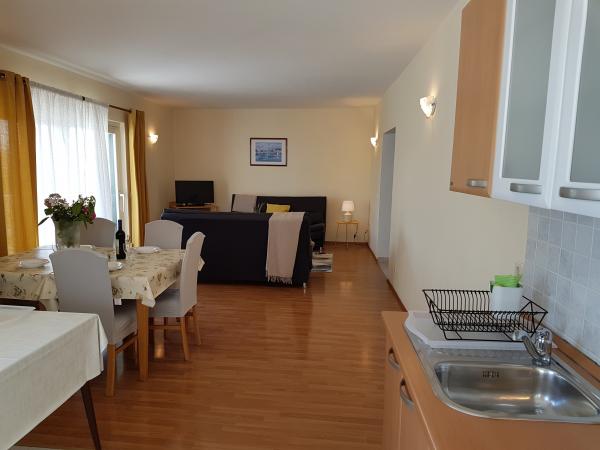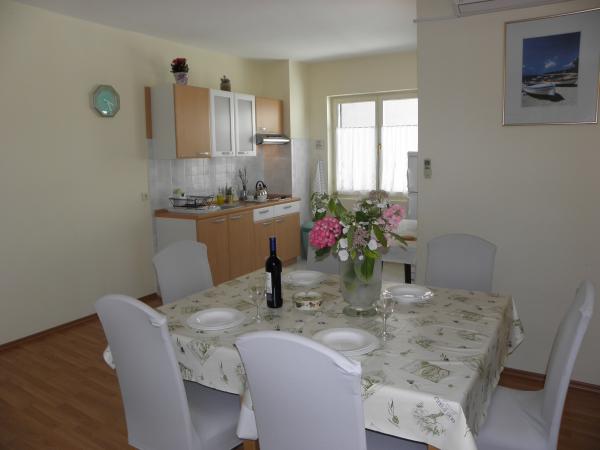 Apartmani Kristina udaljeni su svega 150-200 m od centra i plaže, prilično su prostrani, s brojnim sadržajima kako bi se gosti osjećali ugodno kao kod kuće. Sva tri apartmana su kompletno opremljena kuhinjom, dnevnim boravkom (svi kauči su na razvlačenje), klima-uređajem, TV (satelitski programi). Dva apartmana od 90 m² (na 1. i 2. katu) su svijetli, prozračni, s terasom površine 20 m² s pogledom na more te imaju po dvije prostrane spavaće sobe, a svaka soba ima kupaonicu i ventilator. Apartman površine 40 m² ima balkon od 5 m². U ponudi je jedna spavaća soba površine 15 m² s kupaonicom, klima uređajem i hladnjakom (u hodniku). U cijelom objektu dostupan je besplatan Wi-Fi, u hodniku na ulazu nalazi se mala knjižnica (polica s brošurama, knjigama na par stranih jezika, časopisima). Ispred kuće je veliki parking. Za rezervaciju, uvjete i ostalo pogledajte pod Napomene. Kalendar rezervacija je ažuriran. Veselimo se Vašem dolasku!
