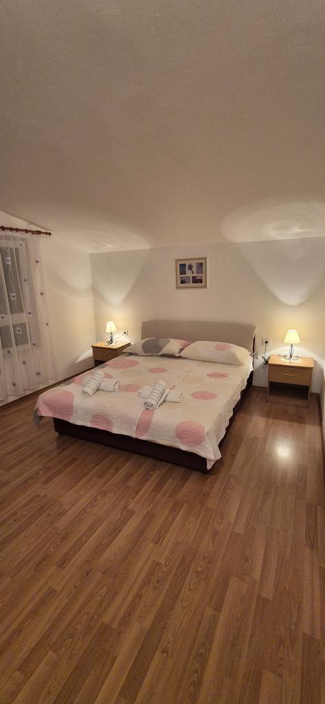 Pročitaj više Smještajne jedinice*U cijenu apartmana je uključeno: boravišna pristojba, uporaba klime, Wi-Fi, posteljina, kupaonski i kuhinjski ručnici. Ručnici za plažu nisu na raspolaganju. *Jedno parkirno mjesto po smještajnoj jedinici osiguran i besplatan, dva samo uz dogovor ukoliko bude mjesta. *Nije dozvoljen unos, posebice električnih, bicikala i romobila u apartman. Molim najaviti dolazak s električnim prijevoznim sredstvima koji se spremaju u automobile. *Akontacija iznosi 200 EUR/jedinici prilikom rezervacije (nema povrata u slučaju otkazivanja od strane gosta). Nakon uplate akontacije šaljemo potvrdu sa svim informacijama o rezervaciji i kućni red. *U apartman A2 može se smjestiti jedno dijete do 12 godina starosti, cijena 10 EUR za noćenje. *Ako imate pitanja, svakako nas kontaktirajte putem e-maila, nastojat ćemo odgovoriti u što kraćem roku, ili nas nazovite;) *Check-in 13:00, check-out 10:00.