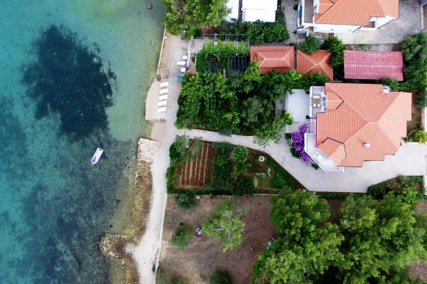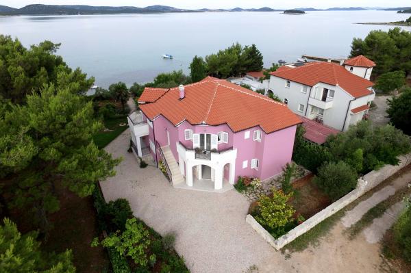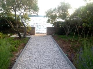Šarmantna novosagrađena kuća na plaži s 3 moderna apartmana, ukupnog kapaciteta do 16 osoba. Smještena u mirnom dijelu uvale gdje je more dovoljno toplo za kupanje u bilo kojem dijelu sezone, a samo 1. 5 km od centra Pirovca, s uređenom plažom ispred kuće, privatnim ležaljkama i vanjskim tušem, oduševiti će vas već na prvi pogled. Pogled s terase/balkona pruža se na cijelu uvalu, otoke i najljepši zalazak sunca, dok do vas dopiru očaravajući mirisi mediteranskog bilja, maslina i cvijeća iz privatnog vrta. Svi su apartmani klimatizirani, s besplatnim pristupom wi-fi internetu, u potpunosti opremljeni svim potrebnim aparatima i uređajima, posuđem, priborom, ručnicima i posteljinom, te je za sve goste osiguran besplatan parking u sklopu objekta.