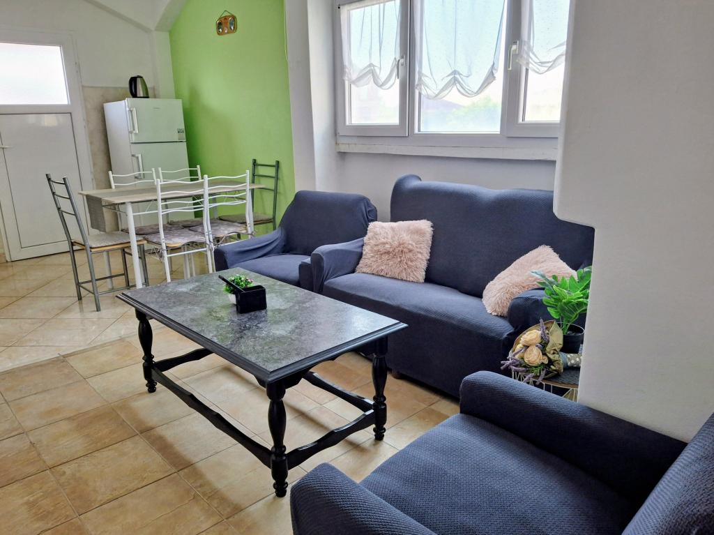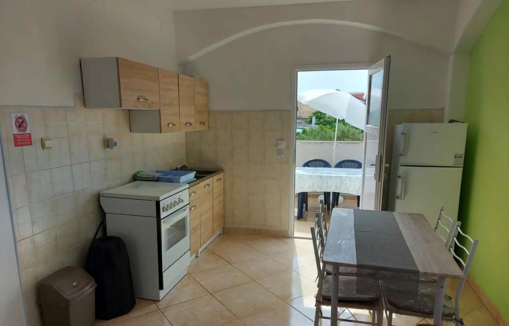 Apartmani se nalaze u prizemlju i na prvom katu obiteljske kuće, smještene u mirnom i ugodnom kvartu, idealnom za opuštajući odmor. Riječ je o dvosobnim, moderno uređenim i potpuno opremljenim apartmanima koji pružaju sve potrebno za ugodan boravak. Gostima su na raspolaganju besplatan Wi-Fi, klima-uređaj, Smart TV, osiguran parking te mogućnost korištenja roštilja. Plaža i centar mjesta udaljeni su svega 300–400 metara, pa automobil nije potreban. U neposrednoj blizini nalaze se tri veća supermarketa, pošta, ambulanta, ljekarna i tržnica, kao i brojni restorani, pekarnice i kafići. Tijekom ljetnih mjeseci u mjestu se svakodnevno organiziraju razne manifestacije te zabavni i kulturni sadržaji. U blizini apartmana nalazi se i dječje igralište, što smještaj čini posebno pogodnim za obitelji s djecom.