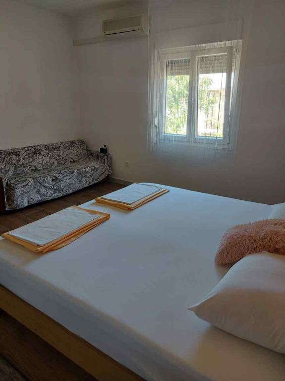 Apartmani se nalaze u prizemlju i na prvom katu obiteljske kuće u mirnom kvartu. Dvosobni, kompletno opremljeni za ugodan boravak. Uz besplatni wi-fi, klimu i TV smart mogućnost korištenja roštilja i osiguran parking. Udaljenost do plaže i centra je 300 do 400 m te nema potrebe za korištenjem automobila. U centru se nalaze 3 veća supermarketa, pošta, ambulanta, ljekarna, trznica te više restorana, pekarnica i kafića. Tijekom ljetnih mjeseci svakodnevno se organiziraju razne manifestacije te zabavni i kulturni sadrzaji. U blizini apartmana nalazi se i dječje igralište.