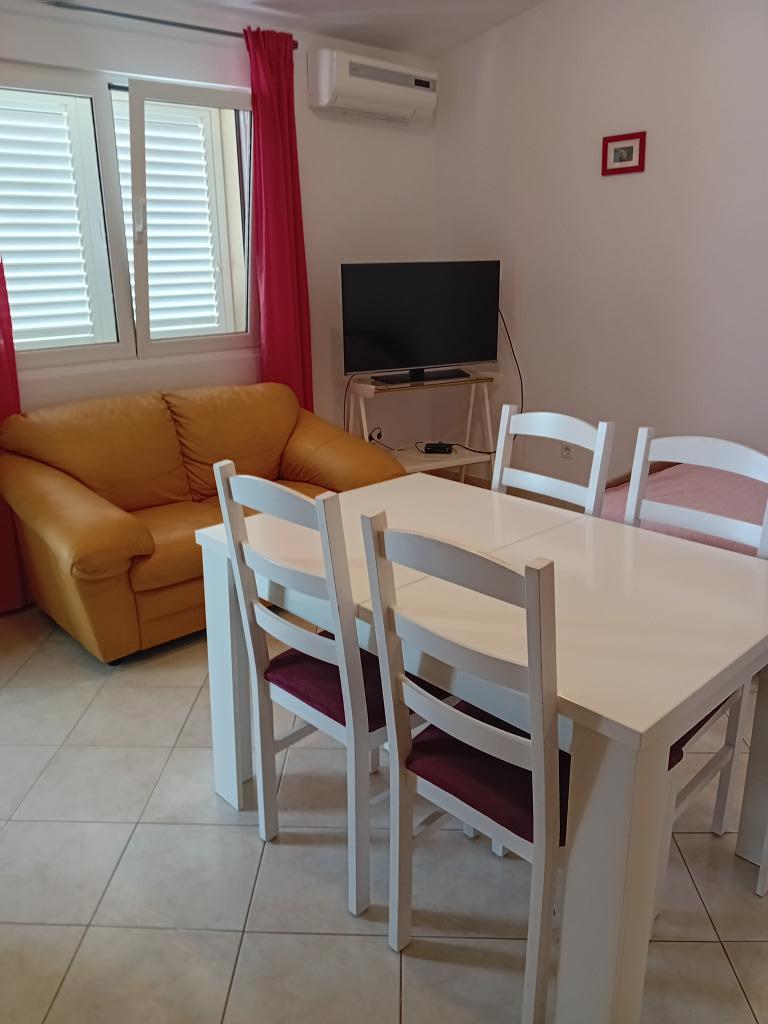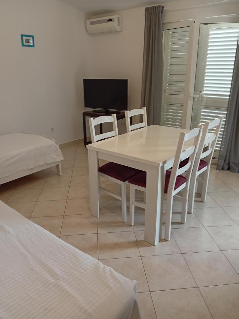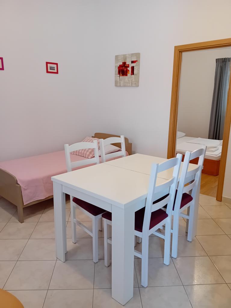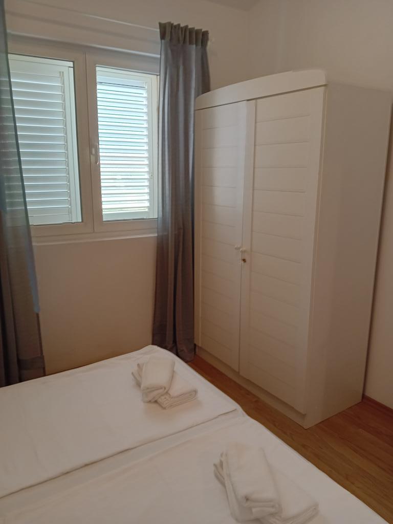 Turistička pristojba je uključena u cijenu.1. Apartman 2+1 površine 40m2 nudi smještaj za 3 osobe. Sadrži spavaću sobu sa bračnim krevetom, kuhinju i boravak otvorenog tipa u kojem se nalazi krevet i dvosjed. Kupaonica opremljena sa tuš kabinom. 2. Apartman 2+2 površine 45m2 nudi smještaj za 4 osobe. Sadrži spavaću sobu sa bračnim krevetom, kuhinju i dnevni boravak otvorenog tipa u kojoj je krevet i trosjed koji se po potrebi razvlači u ležaj. Kupaonica opremljena tuš kabinom.
