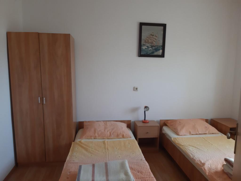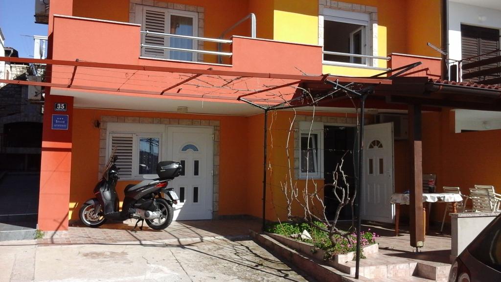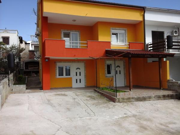 Kuca se sastoji od tri apartmana gornji apartman ima dvije sobe kuhinju sa pomocnim lezajem, kupatilom te terasom sa pogledom na more!! Doljni apartman se sastoji od jedne sobe sa bracnim krevetom plus pomocnim lezajem te kuhinjom sa pomocnim lezajom, kupatilom te terasom sa pogledom na more! Te svaki apartman ima vlastito parkirno mjesto!!! Cijena od 45 eura po danu na dalje