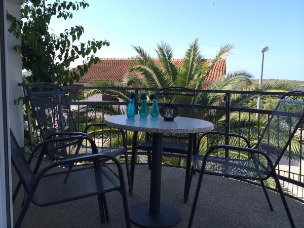 Apartmani su tocno kao na slici. Novi lijepi namjestaj, izuzetno cisti i uredni. Parking osiguran. Domacini su izrazito ljubazni i susretljivi. Plaza je 1-2 min hoda od apartmana, super za obitelj za djecom. Mjesto je ugodno sa dovoljno sadrzaja za obitelj i za mlade. Ako ne zelite biti stalno u mjestu ovo je odlicna pozicija za izlete - autom su vrlo blizu NP Krka, Murter, Vodice. Preporucam! Vracamo se opet!!!