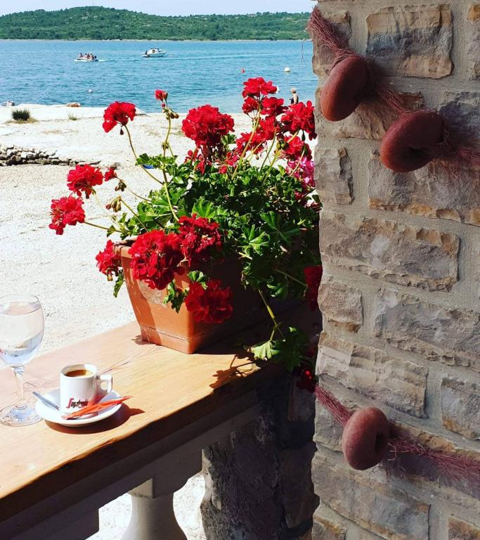 Apartmani se nalaze u predivnom mjestu Pirovac, od plaže samo 150 m, 2 minute hoda, 6 kuća izmedu nas i plaže. Apartmani imaju wi-fi, tv, klimu...Parking je osiguran. Plaža ispod kuće je jako lijepa, pogodna za djecu, šljunčana s lijepim blagim ulazom u more. Na plaži je mali caffe bar pristupačnih cijena za popiti kavu, sok, pivu, pojesti sladoled. U centru su brojni sadržaji za djecu i odrasle, slastičarne, kafići, restorani, lijepa riva, lunapark, šetnica. U centru su također trgovine, tržnica, pošta, ljekarna. Pirovac je preko ljeta bogat kulturnim događanjima, koncertima te gastro ponudom na otvorenom. . Do centra se može doći plažom pješice. Laganom šetnjom je to 10-ak minuta. Možete i pješice drugim putem, kroz uske mirne ulice, a možete i autom, trećim putem, vožnje je 2 minute.