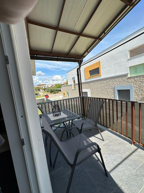 Iznajmljuju se 2 studio apartmana koji se nalaze na 1 katu obiteljske kuće. Svaki apartman sastoji se od bračnog kreveta i pomoćnog ležaja (2+1), klima uređaja i balkona. Parking je osiguran unutar dvorišta. Mogućnost korištenja zajedničkog kamina u dvorištu.