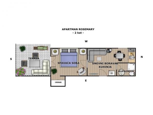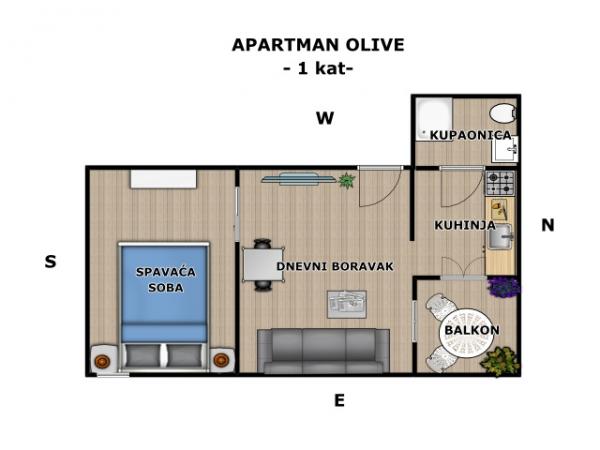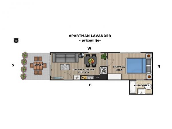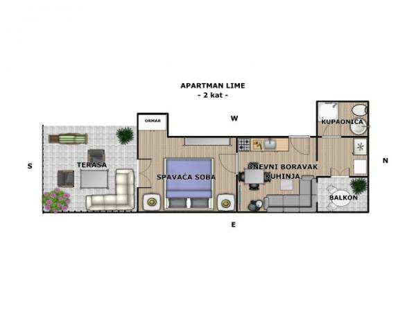 Apartman za dvije osobe plus dva pomoćna ležaja (45 m2)