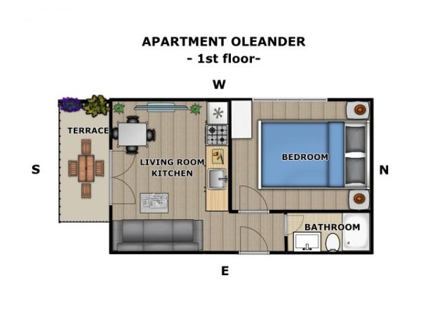Apartman za dvije osobe plus dva pomoćna ležaja (35 m2)