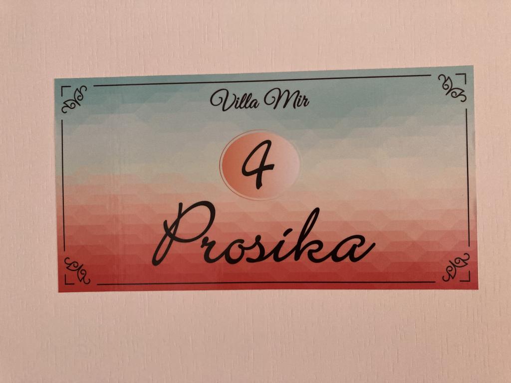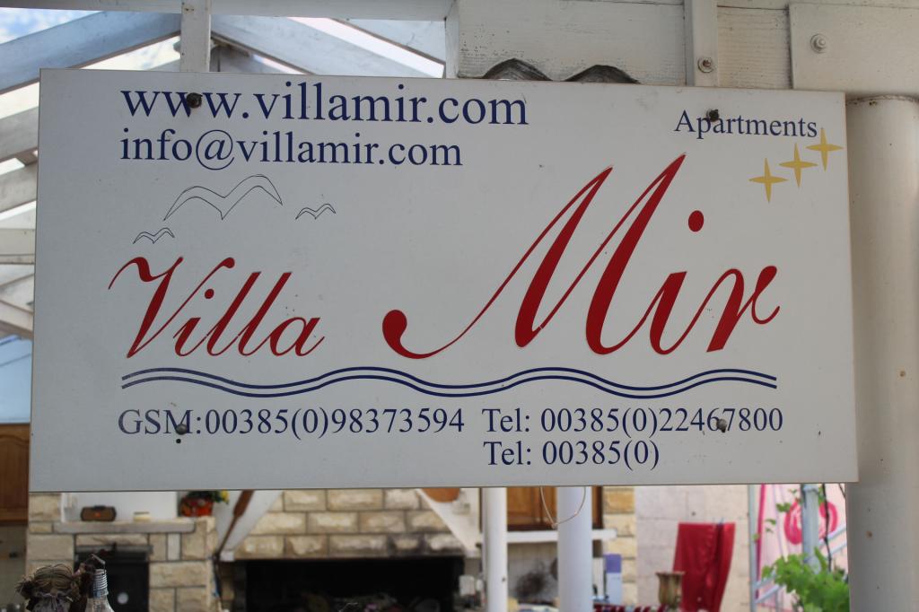 Villa Mir je prekrasna moderna kuća s prekrasnim urednim apartmanima. Prvi put smo muž i ja boravili u apartmanu Prosika koji je nadišao sva naša očekivanja: imate sve što Vam treba kao da ste kod kuće (kuhinjski pribor, zdjelice, lončiće, kuhalo,kuhinjske krpe, televizor, wifi, klimu...) Vlasnici apartmana su veseli, topli, uslužni i susretljivi ljudi. Posebno me se dojmila dobrota i strpljivost gospođe Vedrane,koja mi je izvadila i bodljice ježinca, posudila papuče za vodu.... Ne znam tko ne bi bio zadovoljan tretmanom! Imate svoju privatnost, a ono što je najvažnije osjećate sigurnost, znate da su vlasnici tu i da će Vam uskočiti da se bilo što dogodi. More je blizu, bistro ( 2 min. hoda, ne treba Vam auto ), cvrčci cvrče u borovini... Dođite, odmorite dušu i tijelo, uživajte u miru i napunite baterije za nove radne pobjede koje Vas sigurno očekuju. Gospođa Vedrana će Vas s osmjehom dočekati i ispratiti. Zaista duša od vlasnice!