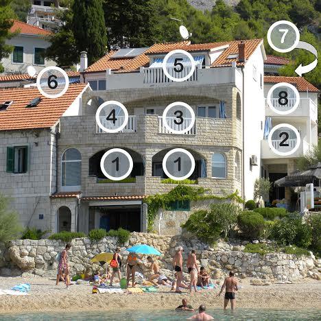 U našoj kući možete koristiti veliku garažu za sve vaše rekvizite za more koje možete odložiti u garaži na samoj plaži i ne morate nositi svaki dan u apartman, možete koristiti naše ležaljke i suncobrane. Imamo vlastiti ograđeni parking za sva vaša vozila. Na našoj recepciji možete dobiti sve informacije koje su vam potrebne o mjestima u okolici koje trebate posjetiti, o transferu sa aerodroma...i ostalo sve što trebate. U našoj kući imamo vlastiti restoran sa domaćim jelima i nudimo našim gostima popust. prilikom posjeta istog.