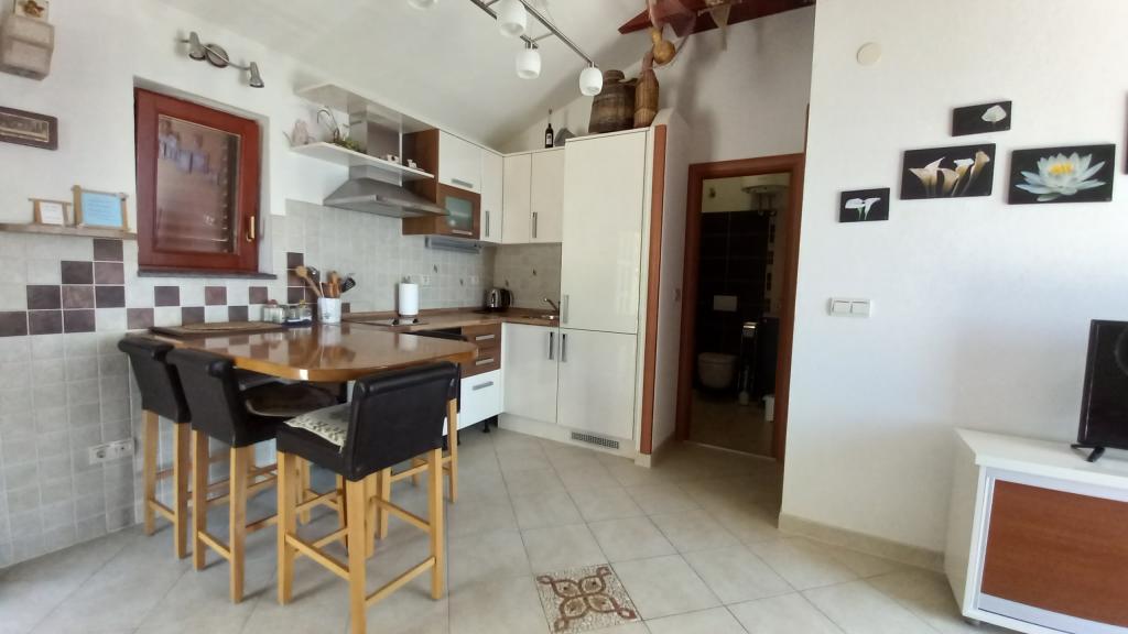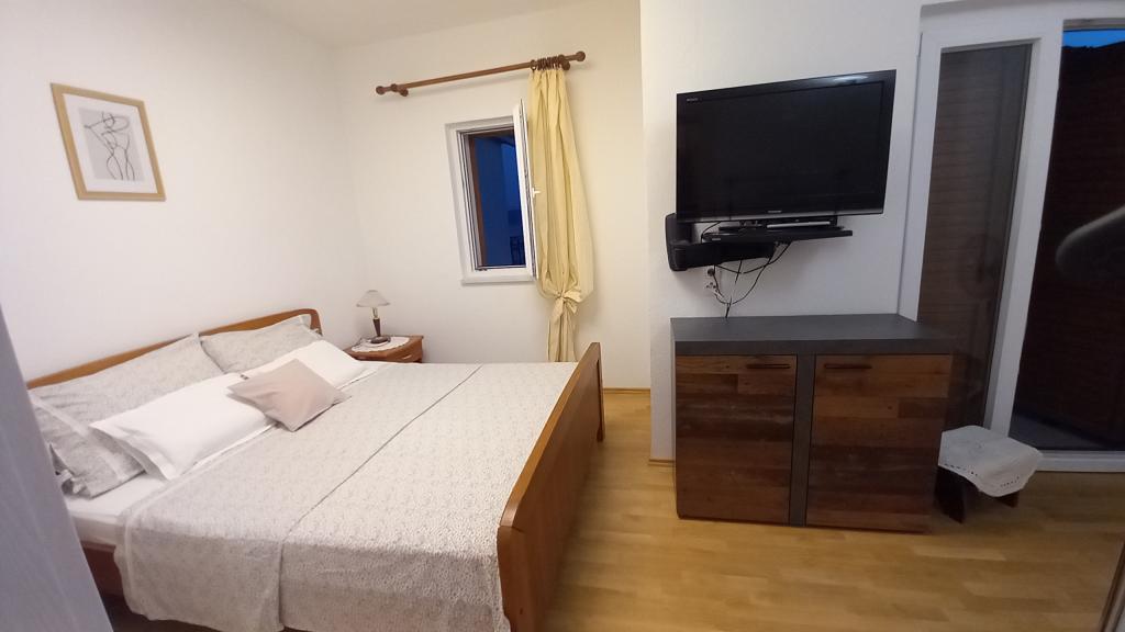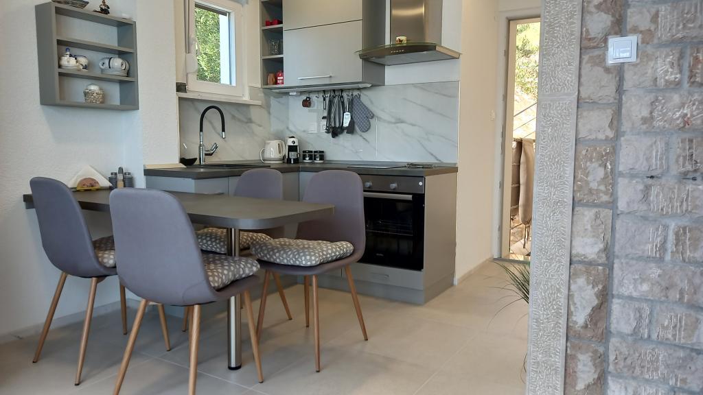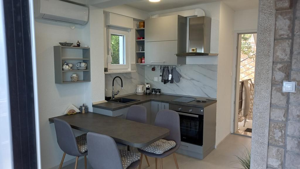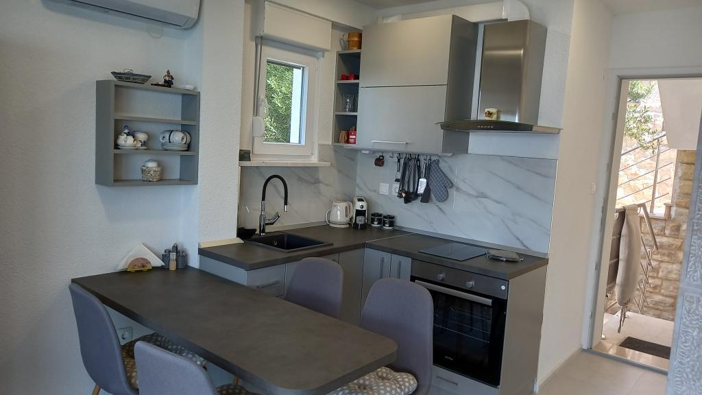 Lijepo, mirno mjesto. Stan potpuno opremljen, nedostaje samo perilica rublja. Inače sve što možete poželjeti. Toster, aparat za kavu, preša, puno posuđa, zdjele, čaše i lonci i tave za svakodnevno kuhanje. Ručnici, maramice i papir, vrećice u košarici samo san. Veliki hladnjak sa zamrzivačem. Klima uređaj. Pristup roštilju uz dogovor vlasnika u bilo kojem trenutku. Uvijek pripremljeno drvo za cijeli roštilj. Vlasnici korisna, lijepa, prijateljska, komunikacija savršeno cool, tko želi govoriti. Od gospođe vlasnice ukusni domaći slani keksi (također smo uzeli recept) i slatki specijalitet Bosenska. Preporučujemo i vino iz vinarije obitelji Lončar, posebno crno vino :-). Vlasnici planiraju proširiti terasu, što će biti još jedan bonus. Pristup plaži je, kao što je već opisano u nastavku, zaista užitak, pogotovo ako je vruće i ako stvari nosite na plažu. Ali plaža je lijepa, čista, super snorkeling, skokovi u vodu, čamci. Sve smo preko noći ostavili na plaži i nikad se ništa nije izgubilo. Hvala vam bio je najljepši stan u posljednjih 6 godina. Svake godine idemo na drugo mjesto, ali sigurno ćemo se vratiti ovdje.