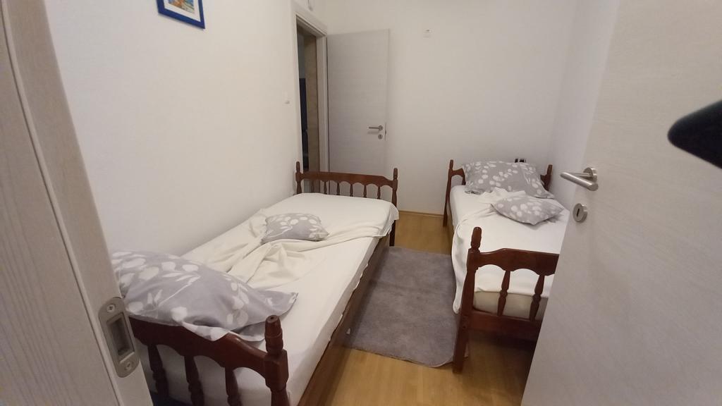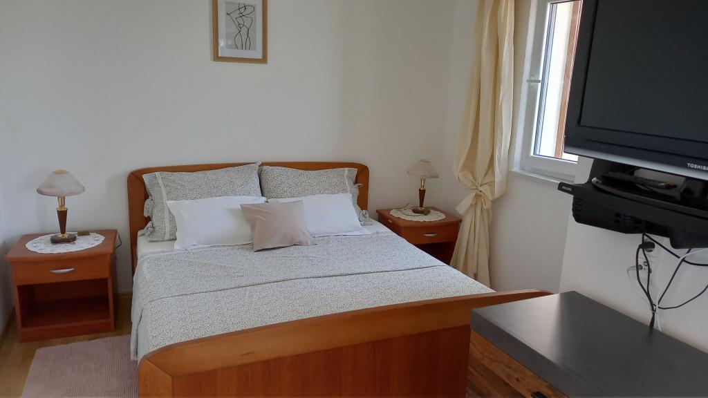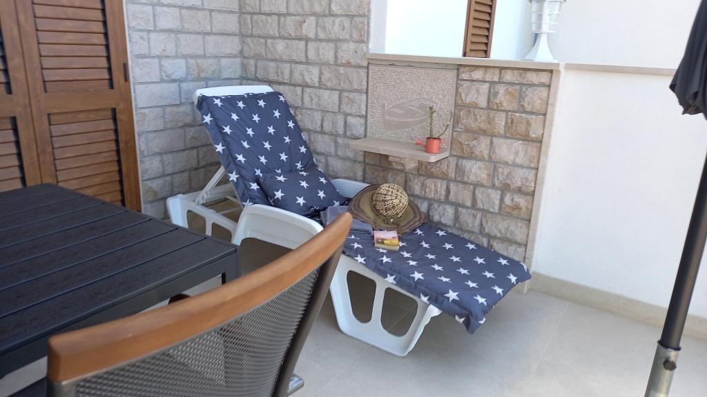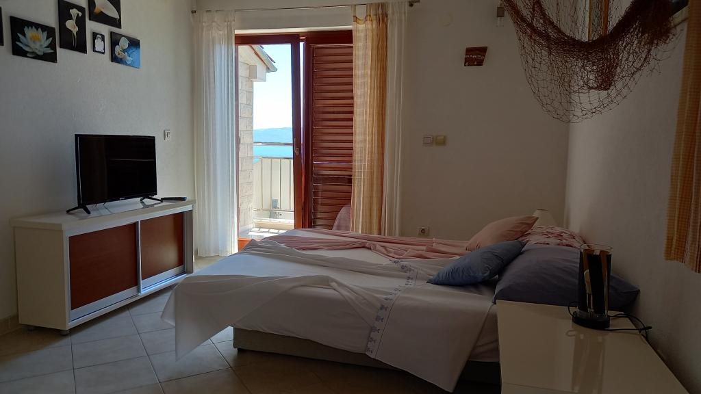 Turistička pristojba je uključena u cijenu. Šaljemo pismenu potvrdu rezervacije (voucher)Odlični domaćini (hvala na izvrsnom domaćem kolaču od oraha i slatkim smokvama, te čokoladicama) i odličan apartman s prekrasnim pogledom na more i otoke s prekrasne terase i ležaljke bili su šlag na torti. Kuhinja je nudila sve što čovjeku treba. Krevet i pomoćni ležaj bili su odlični za spavanje. Ako vam treba odmor i mir, ovo je pravo mjesto. Dvije plaže u blizini. Jedna teže dostupna, a druga lakše dostupna, čak ni s djetetom nije bilo problema. A preporučujem i plažu u centru grada (10 minuta hoda). Dvije konobe i jedan kafić te pekara s dobrim kruhom i izvrsnim pizzama. Odlična lokacija za izlete. Preporučujem 100%.