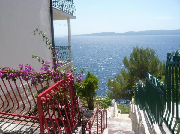 Kompletno opremljeni apartmani u prvom redu do mora, s prostranim terasama u svim apartmanima. Privatne stepenice do mora. Prekrasan pogled na more iz svih apartmana. Vanjski tuš, roštilj i svjetlo za noćno kupanje stoje na raspolaganju našim gostima. Miran predio. Pristup autom do objekta.