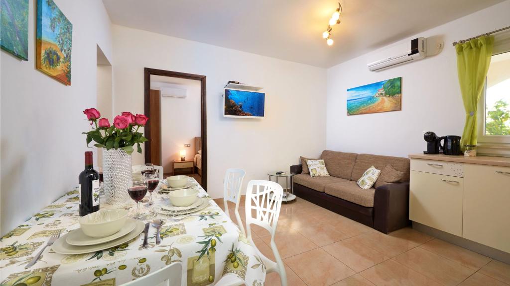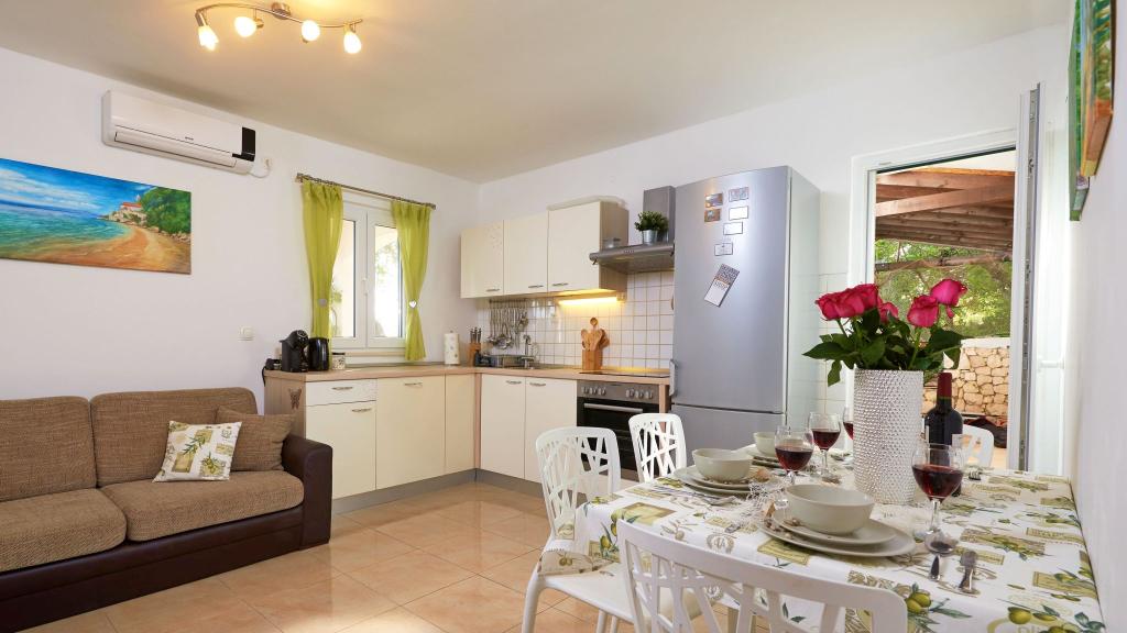 Vrlo dobri apartmani sa svim potrebne opreme u kuhinji, roštilj i sobe. Veliki vrt u blizini kuće. Oko 100 metara od Jadranskog mora. 10 minuta do supermarketa i trgovina sa svježim povrćem. Ostali smo u ovim apartmanima s dvije obitelji s djecom. Vrlo mirno mjesto. Također domaćin je vrlo prijateljski djevojka. Kad smo imali pitanja ili problema, samo mi je nazvati i sve je riješeno.