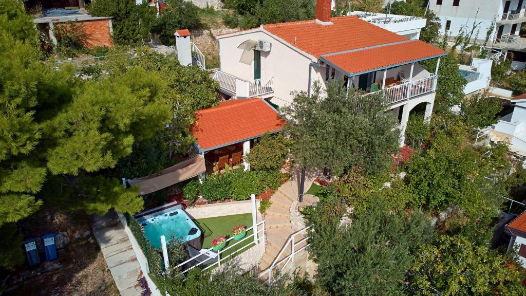 Kakva divna kuća u zelenim brdima Pisak, neometena od susjeda. Kuća je okružena svim vrstama drveća; masline, jabuke i smokve. Vlasta, zahvaljujemo vlasnici što je u vrtu pobrala rajčice, jabuke i smokve. Dvije apartmanske kuće, odvojene na dvije etaže, svaka s 2 spavaće sobe, kadom, kuhinjom cpl. bio je savršeno otvoren za nas 6. Gornji kat ima vrlo dugački balkon s prekrasnim pogledom na more, sjajno mjesto za zalazak sunca i večernje vino. Velika natkrivena terasa daje dobro mjesto i prostor za sve za duži doručak. Tu je i vrlo dobro mjesto za roštilj sa pripremljenim drvenim ugljenom i drvom, testirali smo. Sve izgleda i vrlo je moderno. Osjećaj je uvijek da u ovoj kući apsolutno ništa ne nedostaje. Sva očekivanja su poput unaprijed, s odmora prikazanih fotografija na web mjestu. Usput, Vlasta je bila od velike pomoći, sa savjetom za dobrog mesara, gdje parkirati u Splitu za jednodnevni obilazak… Hvala još jednom. Plaža, nekoliko stepenica prema dolje (5 min) lijepa je mala uvala okružena nekim stijenama za sjedenje, uživanje i opuštanje, s kristalno čistom vodom, savršenom za kupanje i snorkling, također i za našu djecu. Usput, djeca su uživala (dolazeći s plaže) skakati u vrtlog. Do dobrog malog središta Pisaka samo 15 - 20 min , crkva, neke male uličice i vrlo dobar riblji restoran izravno na luci. Hvala, imali smo sjajan tjedan tamo u kolovozu 2019. godine.