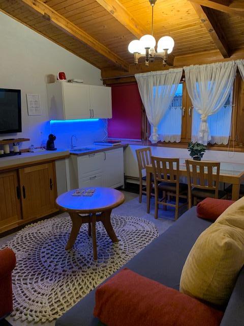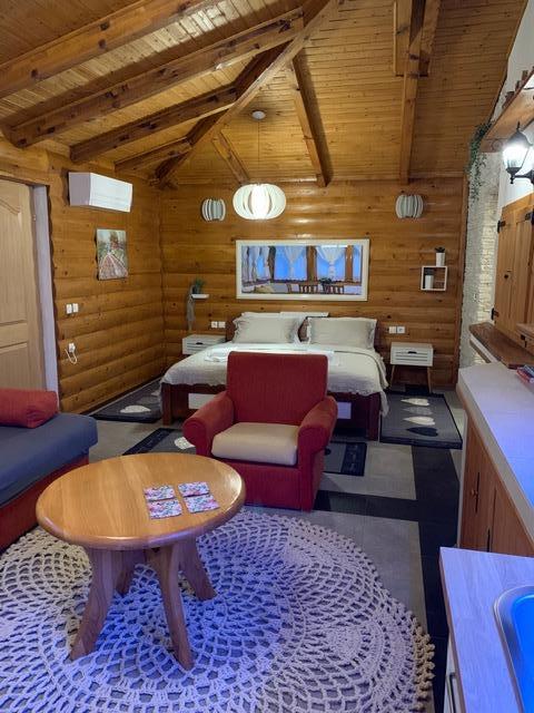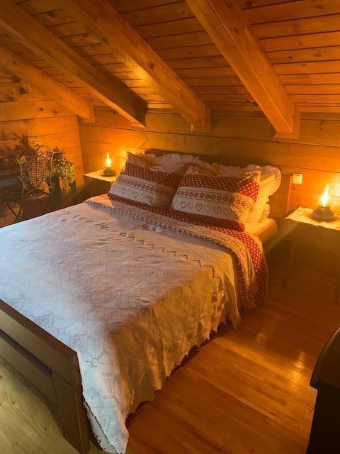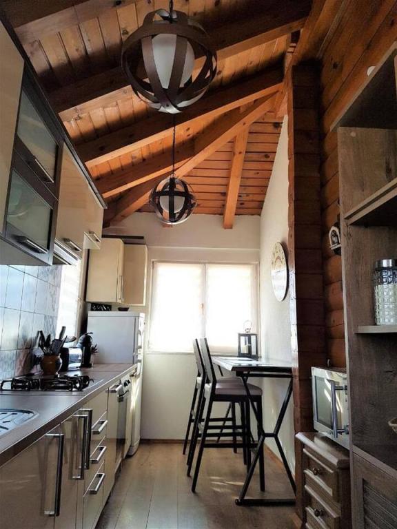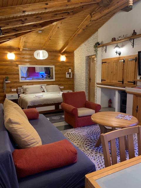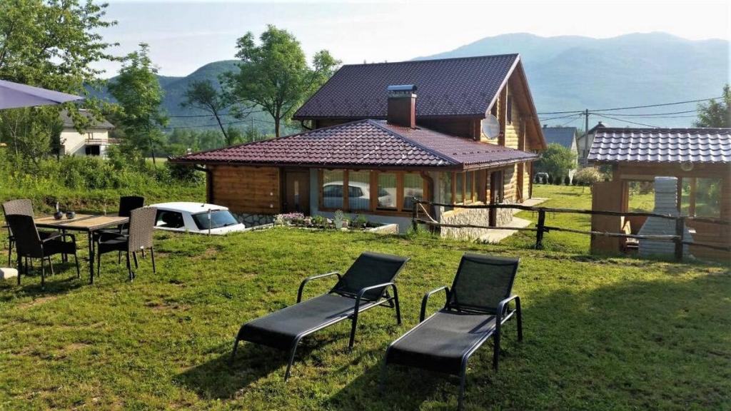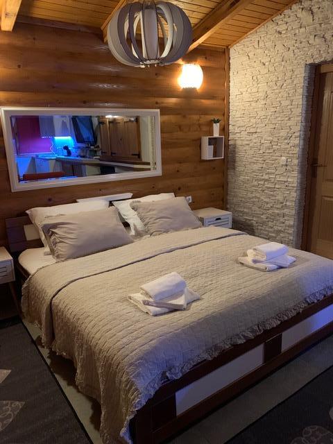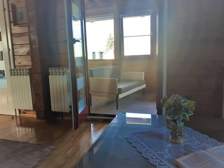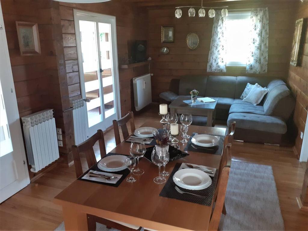 Šarmantna drvena kuća nudi tri bogato opremljena i klimatizirana apartmana s privatnim ulazima. Zbog položaja privlačna je gostima, jer jamči nesmetan pristup čak i u snježnim uvjetima. Velika uređena okućnica, sa svojim sadržajima, nudi obilje zabave i ugodan odmor za djecu i odrasle. Na 1,5km udaljenosti nalazi se centar sa trgovinama i restoranima, a ulaz u nacionalni park udaljen je 16km. Boravak u drvenoj kući, osim što je ugodan, vrlo je i koristan. Slojevi smole unutar zidova pozitivno utječu na dišne puteve, a tople boje i prirodnost drva umanjuju stres i potiču kreativnost i druženje. Drvena kuća nema statičkog elektriciteta pa ne privlači prašinu. Zbog toga je idealan izbor za osobe alergične na prašinu. Drvene površine upijaju višak vlage iz zraka, a kad zrak postane suh ispuštaju upravo onu vlagu koju su prethodno upile. Zato kažemo da drvena kuća živi i diše. Kako je drvo i odličan prirodan izolator, boravak ljeti je ugodan i bez klima uređaja, a zimi dobro čuva toplinu.