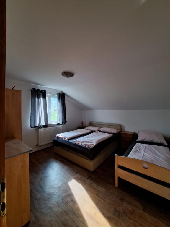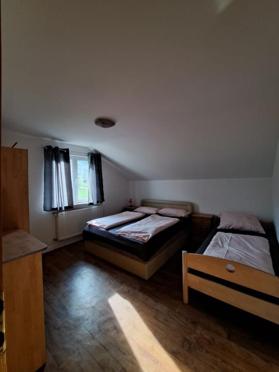 Iznajmljujemo našu kuću u mirnom, zelenom selu u Vranovači. Korenica je gradić koji graniči direktno s Nacionalnim parkom Plitvička jezera. Ulaz u nacionalni park udaljen je 14 km. Do Bihaća u Bosni ima točno 36 km. Prva plaža u Rovanjskoj udaljena je manje od 1 sata (87 km), što je čini savršenom za dnevne izlete. Ovo je idealno za ljude koji ne vole komarce i noćnu vrućinu, a ipak žele biti uz more. Kuća ima 3 spavaće sobe za po 3 osobe, a moguća su i 3 spavaća mjesta u dnevnoj sobi. Kuhinja je potpuno opremljena. Ima veliku terasu sa pogledom na Plješevicu. Iza kuće možete roštiljati, skakati na trampolinu ili se sunčati. Možete planinariti ili voziti bicikl. U svakom slučaju, imate puno privatnosti! U mjestu postoji nekoliko restorana domaće kuhinje, pošta, nekoliko trgovina mješovitom robom i banka.