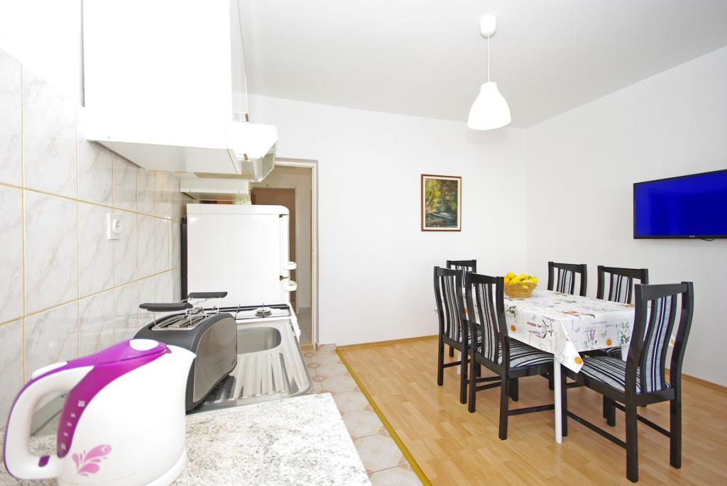 Pročitaj više Smještajne jediniceApartman se izdaje kao 6 + 1. Obavezna je uplata akontacije od 35% iznosa najma kao potvrda rezervacije, te se uplaćuje na bankovni račun po uputama iznajmljivača. Ostatak iznosa najma se plaća po dolasku u apartman u gotovini. Vrijeme dolaska je od 14:00 sati, a vrijeme odlaska do 10:00 sati. Boravišna pristojba je uključena u cijenu. Nema nikakvih dodatnih plaćanja. Internet i jedno parkirno mjesto su besplatni. Pušenje je dozvoljeno isključivo na terasi ili balkonu.