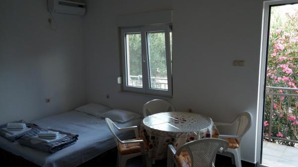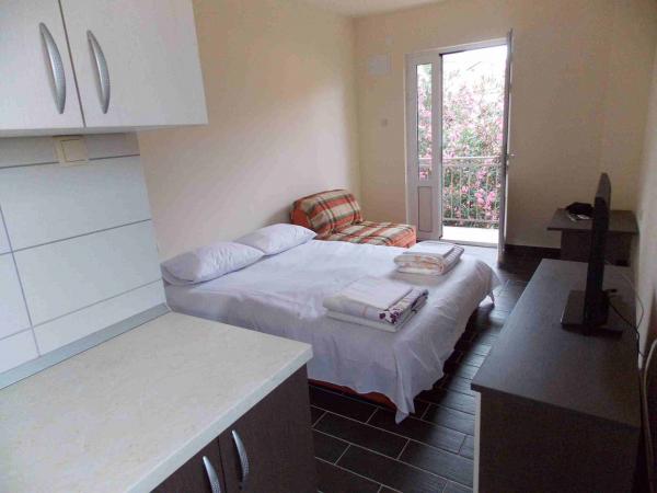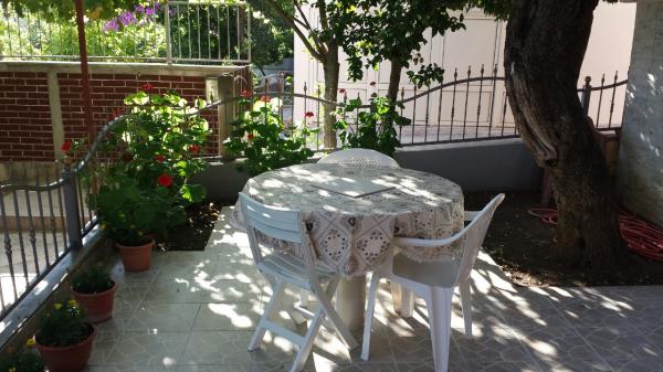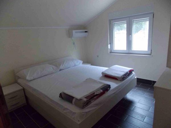 Apartmani su smješteni u samom centru Podace. Udaljeni su 100m od mora i predivne plaže. Trgovina, pošta, sportski teren, crkva, autobusna stanica i mjenjačnica nalaze se u krugu od 40 m od apartmana. Objekt se sastoji od četiri apartmana: dva odvojena apartmana za dvije osobe sa pomoćnim ležajem, jednog apartmana za dvije osobe sa tri pomoćna ležaja te velikog apartmana za četiri osobe i tri pomoćna ležaja. Apartmani su novouređeni i opremljeni sa klimom, televizijom, kupatilom i kuhinjom. Apartmani imaju na korištenje i dvije terase, te dvorište u hladovini sa roštiljem. Gostima je omogućen parking, a u cijenu je uključena boravišna pristojba. Posteljina i ručnici su uključeni u cijenu i mjenjaju se svakih sedam dana.
