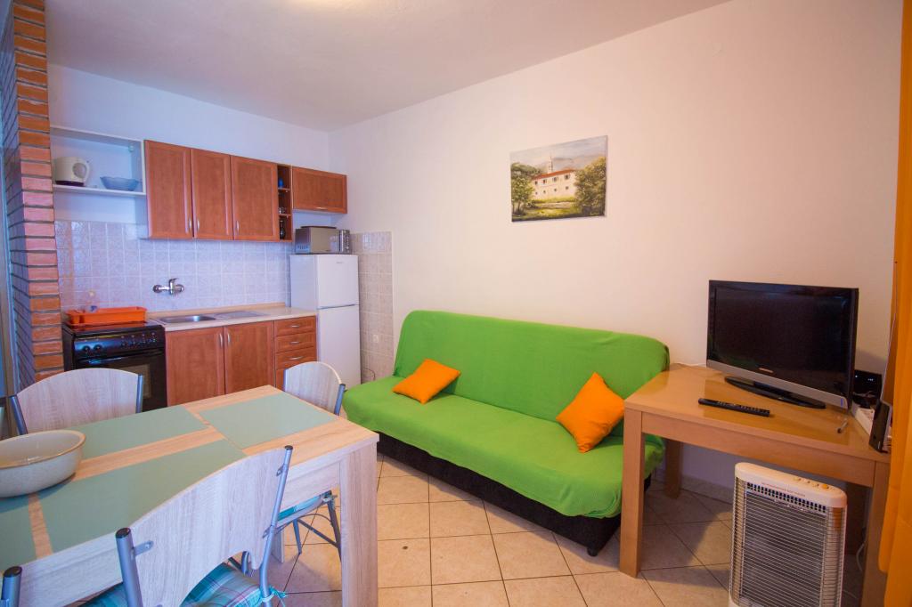 Pročitaj više Smještajne jedinice- Za vrijeme dužeg boravka zamjena posteljine se vrši svakih 7 dana, a ručnika po potrebi i češće. - Dnevni najam, boravišna taksa, posteljina, ručnici, opremljena kuhinja s potrebnim posuđem i priborom, utrošak vode, struje i plina, klima, bežični internet i parkirno mjesto su uključeni u cijenu aranžmana. - Akontacija je 30% od ukupne cijene aranžmana. Plaćanje akontacije se vrši uplatom novca na bankovni račun. Ostatak do pune cijene dogovorenog aranžmana plaća se kod dolaska.