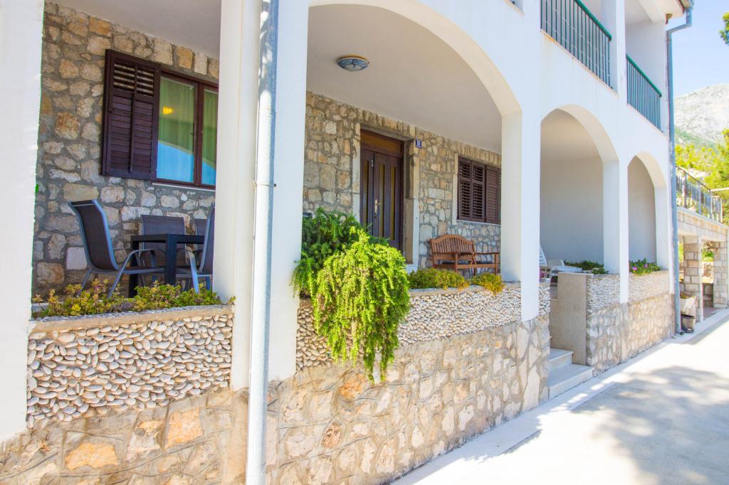 Pozivamo Vas u Apartmane Kosović I smještene u mjestu Podaca, mjestu poznatom po čistom moru, blagoj klimi, prekrasnim plažama i velikoj turističkoj tradiciji. Mjesto idealno za ugodan obiteljski odmor, a svojim geografskim položajem prikladno za jednodnevne izlete u obližnje gradove; Dubrovnik, Mostar, Makarska, Split, svetište Međugorje, kao i otoke Hvar, Korčula i poluotok Pelješac. Kuća se nalazi na obiteljskom imanju uz šljunkovitu plažu, daleko od gužve i magistrale. Sva četiri apartmana su kategorizirani s tri zvjezdice, imaju zaseban ulaz, klimatizacijski uređaj, pristup bežičnom internetu te ukupnog kapaciteta od 21 ležaja i 4 pomoćna ležaja. Parkirno mjesto je osigurano unutar posjeda koji okružuje kuću na označeni mjestima.