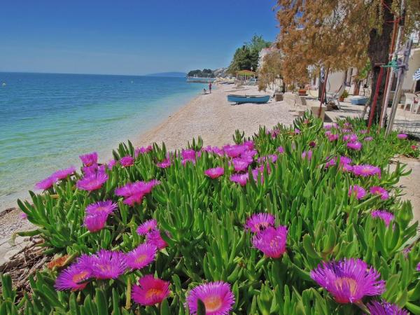 Smješteni na plaži u centru Podace, apartmani Leut nalaze se u tipičnoj dalmatinskoj kamenoj kući s pizzeriom u prizemlju. Svi apartmani su klimatizirani te imaju balkon i potpuno opremljenu kuhinju. Besplatni bežični pristup internetu dostupan je u čitavoj zgradi. Svaki apartman također sadrži TV ravnog ekrana sa satelitskim programima i privatnu kupaonicu. Apartmani Leut imaju jednostavno i elegantno uređenje. Pojedini apartmani imaju i izložene drvene grede, kamene zidove i parketni pod.