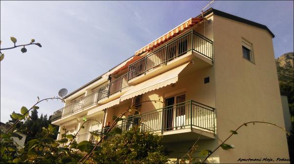 Opremljeni apartmani u mjestu Podaca na Makarskoj rivijeri, sa velikom i lijepo uređenom okućnicom te privatnim parkingom. Objekt je udaljen 100 metara od mora i šljunčane plaže, 200 metara od centra. Osim terase u apartmanima, gostima je na raspolaganju veliki dvorišni prostor sa stolovima, stolicama i kaminom. Objekt je udaljen od Makarske 35 km, od Parka Prirode Biokovo 35 km, Svetišta u Međugorju 50 km, te Dubrovnika 120 kilometara.