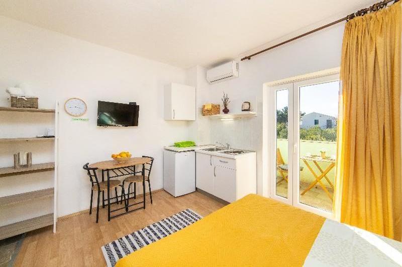 Apartmani se nalaze u mirnom mjestu 50m od mora. Blizu je trgovina,pošta i zdravstvena ustanova. Parking je osiguran. Wi - fi i klima ukljuceni u cijenu.