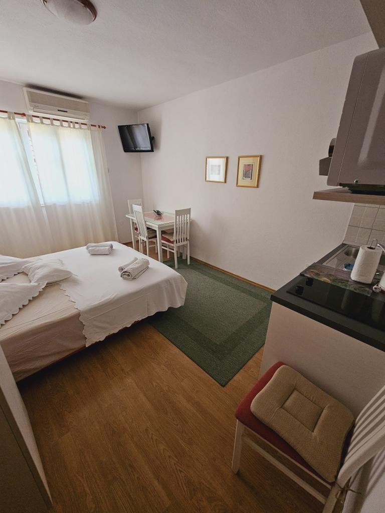Turistička pristojba nije uključena u cijenu. Šaljemo pismenu potvrdu rezervacije (voucher)Smještaj je bio apsolutno nevjerojatan. Preporučujem vlasnicima da snime video o smještaju, jer je u stvarnosti smještaj izgledao još bolje nego na fotografijama. Sobe su bile klimatizirane, a imale su i stropni ventilator, sve je bilo prekrasno čisto, uredno. Dobili smo dodatne čiste ručnike nakon tjedan dana, vlasnici su bili nevjerojatni, uslužni, pomogli su nam s servisiranjem našeg automobila koji smo ostavili na autocesti. Svakako preporučujem i nisu nam smetale stepenice do plaže. Shvatila sam to kao trening. Puno malih plaža, živo navečer, ali i mirno, trgovine, blizu Makarske s većim trgovinama. Za mene, izvrsna lokacija. Bili smo ovdje s obitelji s troje djece i s djedom. Djeci smo prikazivali bajke na našem jeziku na Netflixu, apartman je imao dvije kuhinje i posebno dva WC-a, što je bilo odlično.