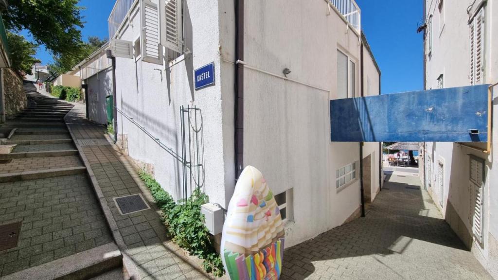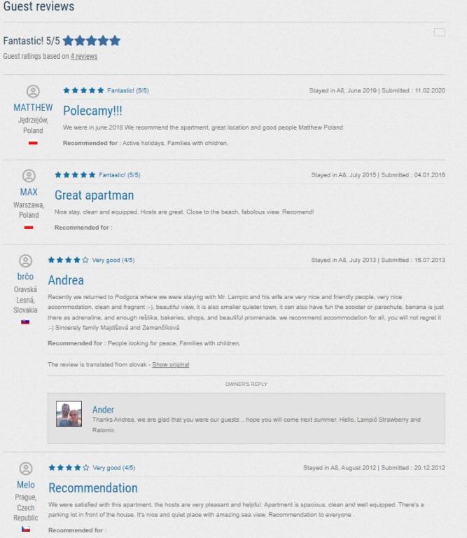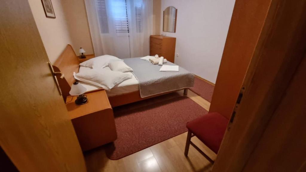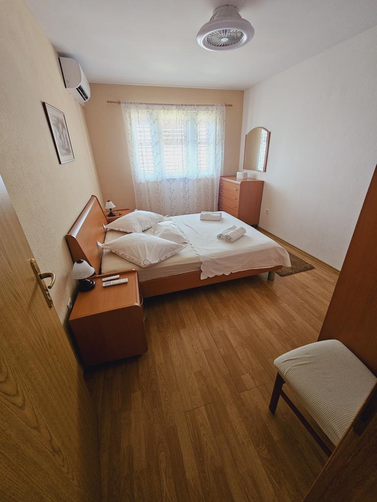 Ovaj tradicionalno opremljeni apartman u obiteljskoj kući nalazi se u mirnom dijelu mjesta Podgore, svega udaljen samo pet minuta ugodne šetnje od centra, te 50 m udaljen od plaže. Ovaj klimatizirani apartman, sa 4 komforne spavaće sobe, 2 kupaila i 2 kuhinje, besplatni parking za vaša 2 auta, te nude sve komoditete koje će učiniti savršenim vaš ljetni odmor. Uz smještaj dobiti ćete i sve potrebne informacije i usluge koje su vam potrebne za što bolji odmor u našem prekrasnom gradiću.