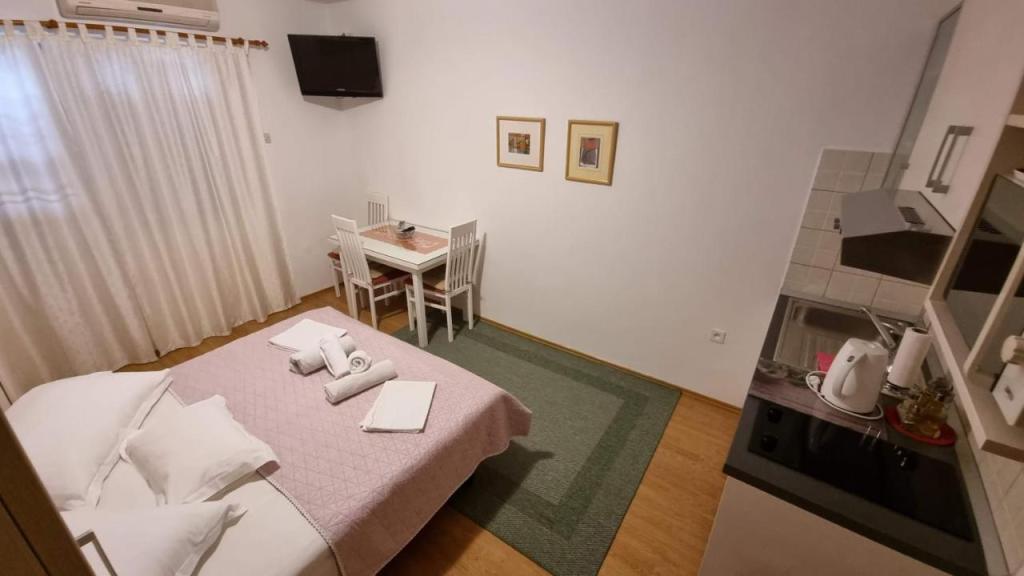 Pročitaj više Smještajne jedinicePoštovani, apartman se iznaljmljuje kao kompletan od 4 - 8 ljudi. Molimo da prije upita provjerite kalendar zauzetosti koji mi stalno ažuriramo. Rezervacija se unaprijed plaća: 10% od ukupnog računa. Šaljemo pismenu potvrdu rezervacije (voucher)