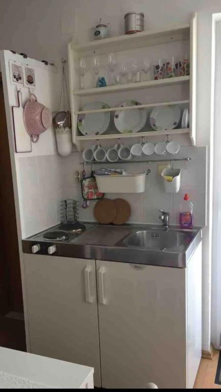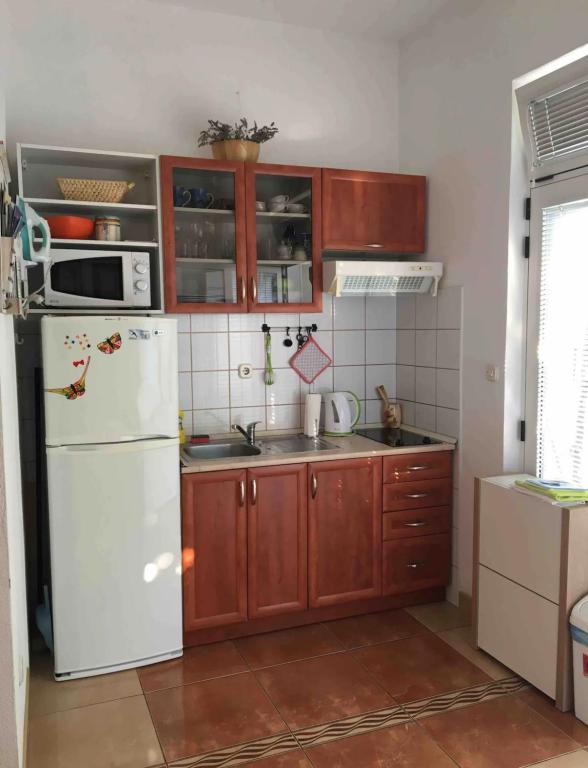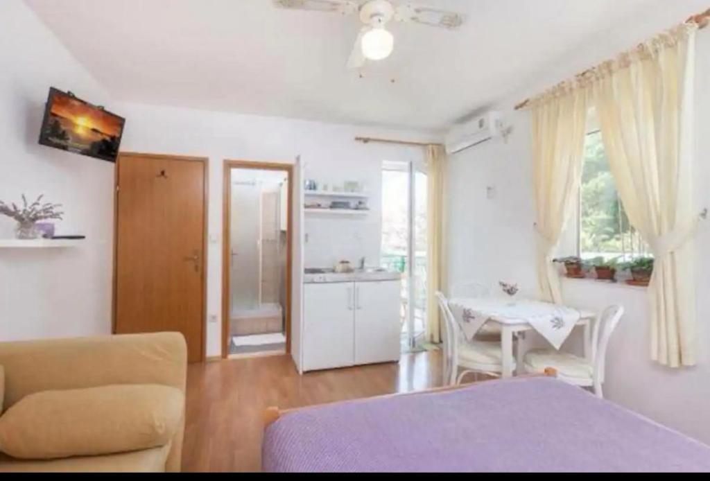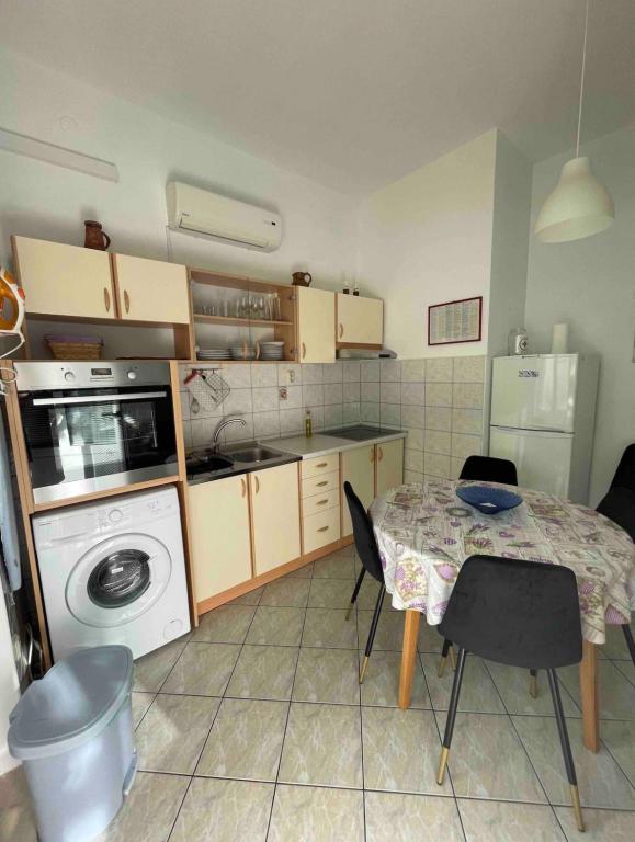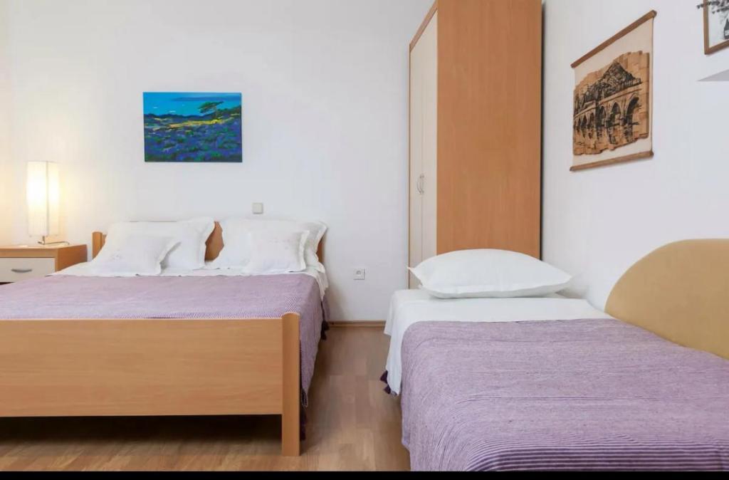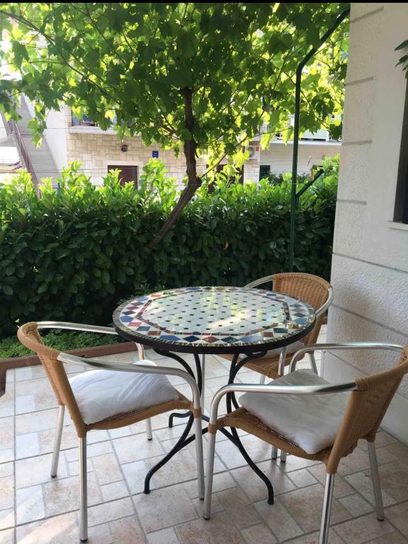 Obiteljska kuća koja se sastoji od tri odvojena apartmana. Svaki apartman je opremljen sa kuhinjom sa svim osnovnim priborom za kuhanje i pripremanje obroka. Ispred apartmana je mala terasa koja je biljkama zaklonjena od znatiželjnih pogleda s ulice. Gosti iz apartmana se mogu služiti roštiljem koji se nalazi iza kuće.