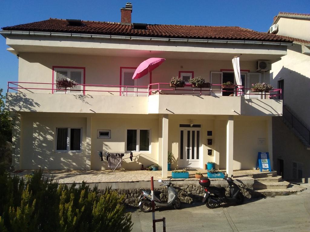 Novo uređeni, komforni apartman s 3 spavaće sobe, 2 kupatila, kuhinja i veliki dnevni boravak s pogledom na more, (ukupno 100m²) balkon, . WI FI, TV Sat. Klima, Parking. Apartman se nalazi na 2. katu obiteljske kuče s kojeg se pruža prekrasan pogled na more i otoke Hvar i Brač s jedne strane i na planinu Biokovo s druge.