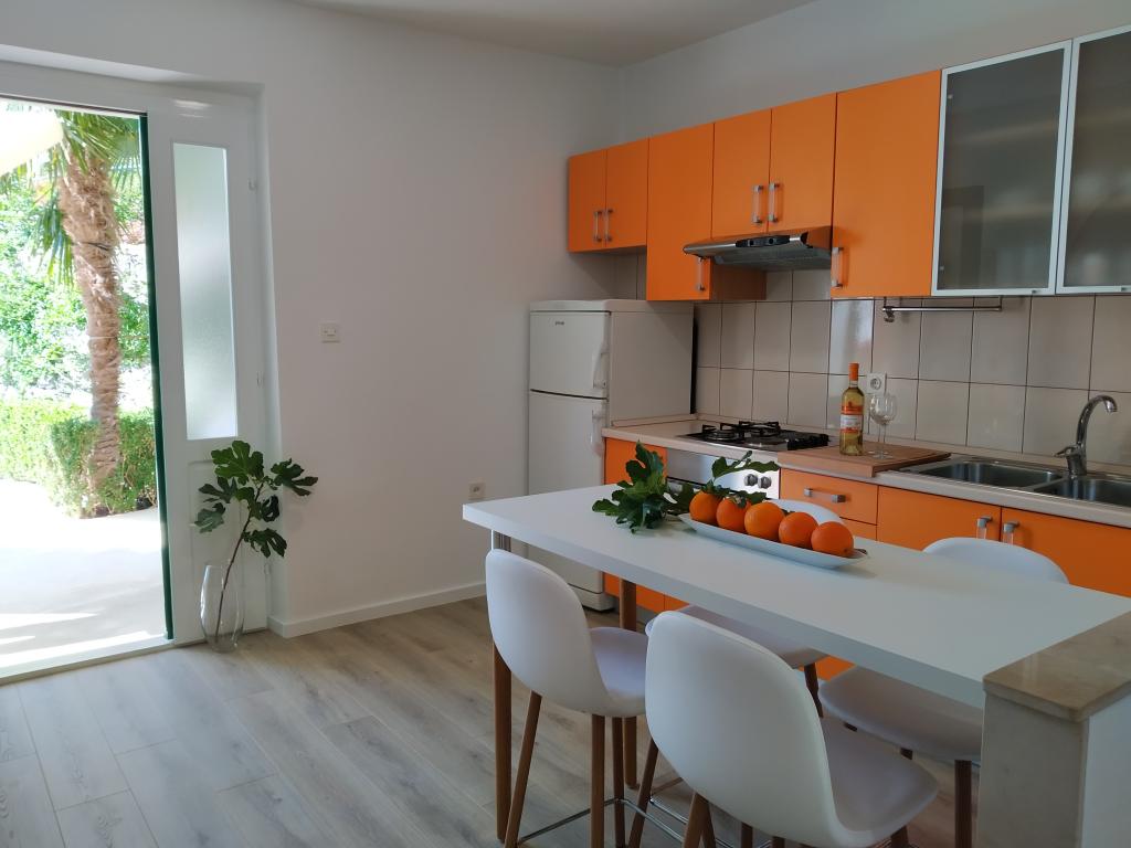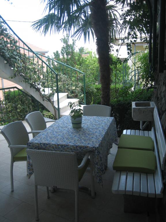 Ugodno uređeni i kompletno opremljeni apartmani u obiteljskoj kući u mirnom predjelu Podgore; samo 3 minute hoda udaljeni od centra mjesta i plaže. Kuća je okružena vrtom te svaki aparman ima veliku i lijepo opremljenu terasu.