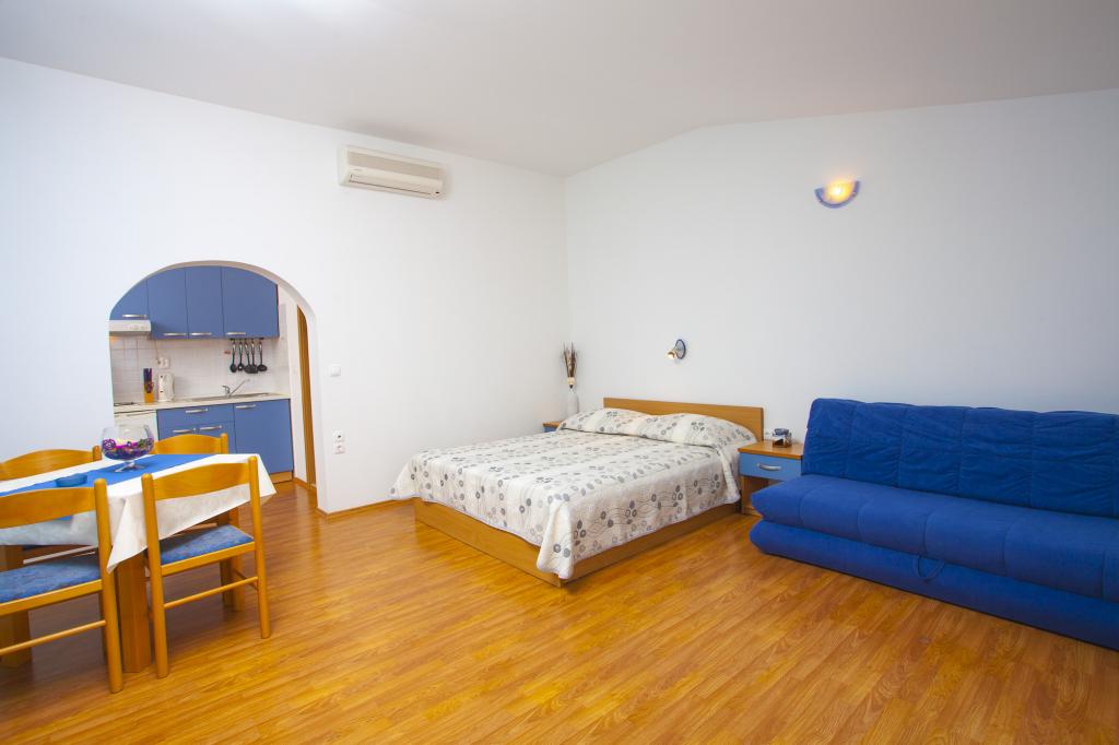 Apartmani Kunac okruženi su zelenilom, a nalaze se u mirnoj uvali, na samo 70 metara od šljunčane plaže s malim pristaništem. Šetalište uz more vodi do središta mjesta, udaljenog 700 metara. Apartmani su smješteni 100 metara od restorana u kojem se poslužuju riblji i mesni specijaliteti te 150 metara od trgovine prehrambenih proizvoda. Kafići, trgovine, galerije i razni noćni zabavni objekti udaljeni su 700 metara. U Makarskoj se nalazi trajektna luka, a najbliža zračna luka smještena je u Splitu, 90 km od apartmana. U centru Podgore se nalaze brojni restorani, pizzerije i caffe barovi sa živom muzikom te kušaona maslinovog ulja u kojoj prodajemo i naše proizvode.