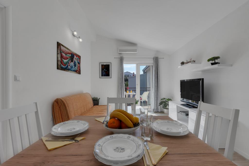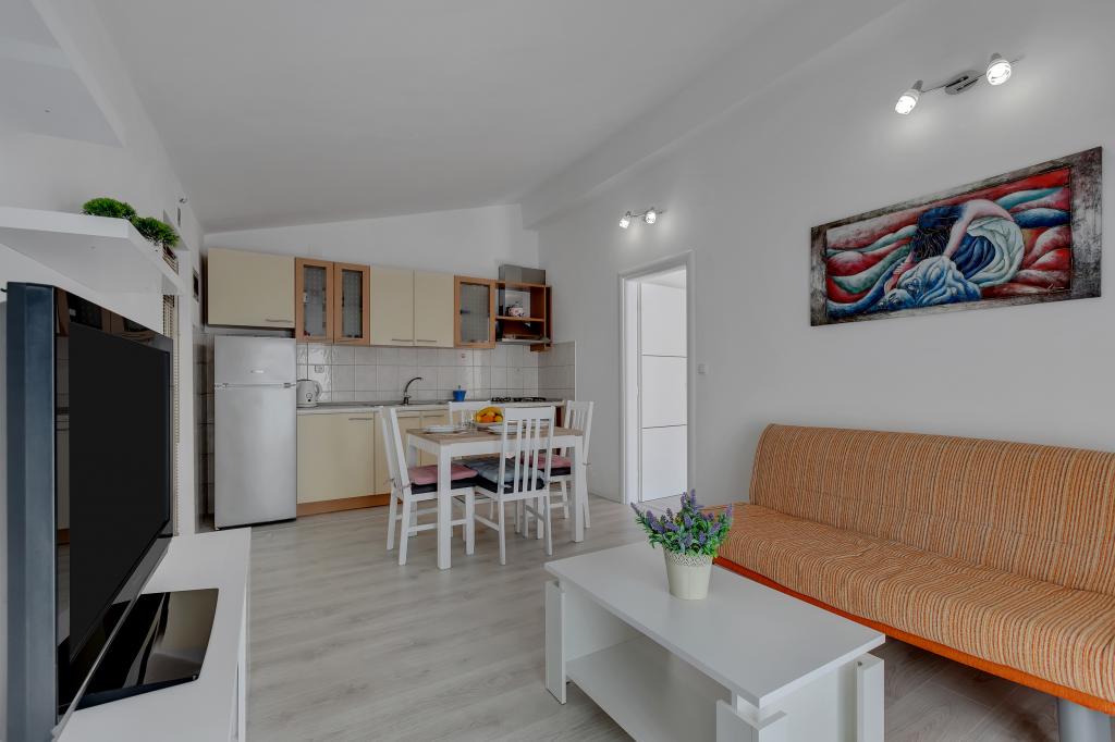 Boravili smo u apartmanu 8 dana s našim odraslim sinom, koji ima invaliditet i specifične potrebe. Apartman je namješten sa svime što vam je potrebno, čist i ima lijep pogled na more. Klima uređaj je funkcionalan, parking je bez problema. Gazdarica je ugodna i bila je dostupna tijekom cijelog boravka. Voljeli bismo se vratiti nekad....