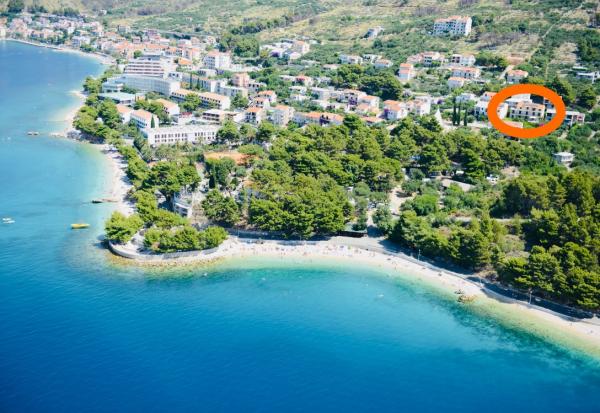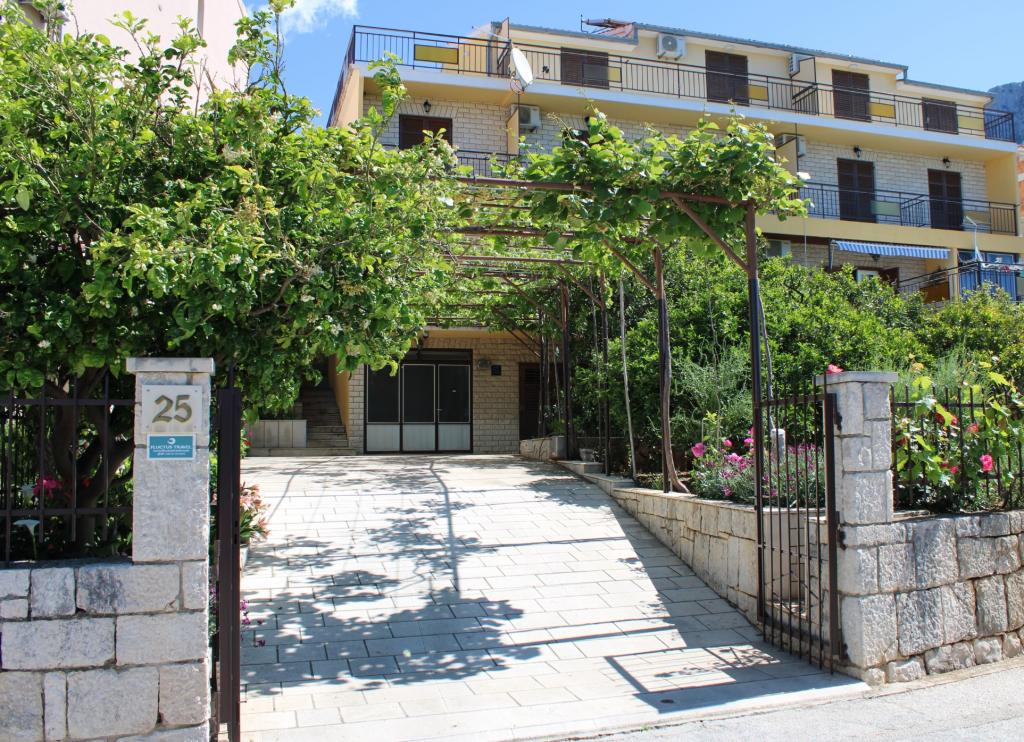 Apartmani Slaven se nalaze u mirnom dijelu Podgore, samo 150 metara od plaža, sportskog kompleksa i dječjeg igrališta. Unutar apartmana nalaze se klima uređaji, satelitska TV, besplatan pristup internetu, potpuno opremljena kuhinja s pećnicom i štednjakom, posteljina, ručnici, kauč, kupaonica s tuš kabinom, sunčani balkon (pogled more ili planine ), parking i mogućnost kolijevke za bebu na zahtjev. Zajednički dnevni boravak je na raspolaganju gostima i nalazi se u prizemlju, opremljen je sa satelitskom televizijom, igračim kartama, itd. Roštilj se bez problema može koristiti na zahtjev. Autobusna stanica se nalazi 200 metara od kuće, centar Podgore je na udaljenosti od 400 metara. U centru i na putu gosti mogu pronaći banku, kafiće, trgovine, tržnicu, suvenirnice, itd. Doktor je samo 100 metara od apartmana Slaven, a ulaz u Park prirode Biokovo je samo 3, 5 km od apartmana Slaven. Grad Makarska je 7 km sjevernije od Podgore.