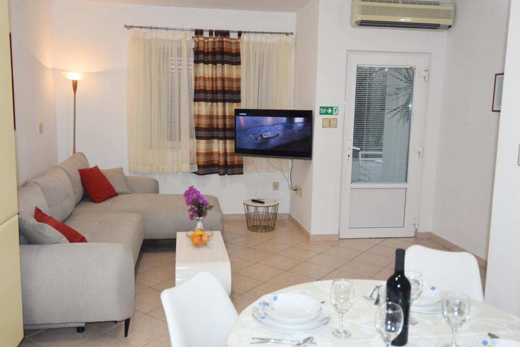 Villa NADA Podgora se nalazi u mirnoj ulici 100 m od mora i centra mjesta, blizu restorana, trgovina i cafea, sa vlastitim parkingom, besplatnim internetom, komfornim apartmanima pužit će Vam nezaboravan odmor. Apartman A-4+1 nalazi se u prizemlju ville, a sastoji se od dvije dvokrevetne sobe sa vlastitim kupaonicama, mašinom za pranje robe, kuhinjom sa špaherom, pečnicom, hladnjakom i zamrzivačem, mašinom za pranje posuđa, mikrovalnom pečnicom, aparatom za kavu, dnevnim boravkom sa kaučem za jednu osobu, KLIMOM, SAT TV, WI-FI, sefom, terasom-pogled more i vanjskim grilom, te vlastitim parkingom. Apaartman A-2+1 nalazi se u prozemlju ville a sastoji se od jedne dvokrevetne sobe sa kupaonicom i mašinom za pranje robe,, kuhinjom sa špaherom i pečnicom, hladnjakom, aparatom za kavu, kaučem za jednu osobu, SAT TV, KLIMOM, WI-FI, terasom-pogled more, vanjskim grilom i vlastitim parkingom
