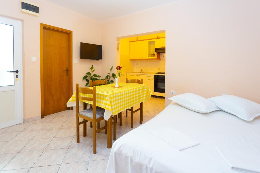 Pročitaj više Smještajne jediniceZa boravak do 3 dana cijena je uvećana za 30 % Klimatizacija nije ukljućena u cijenu (5 Eura za dan ) Kako bi ostvarili rezervaciju potrebno je unaprijed uplatiti 25% od ukupnog iznosa. Ostatak se plaća u gotovini po dolasku u apartman. Dolazak do 14:00. Odlazak do 09:00.