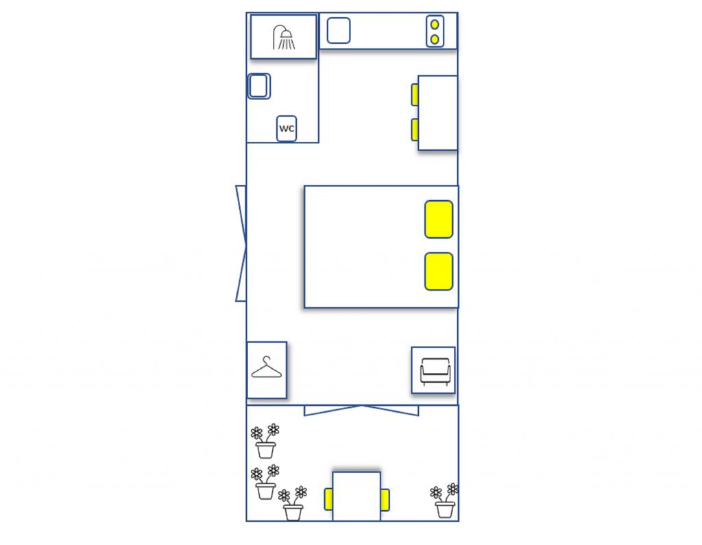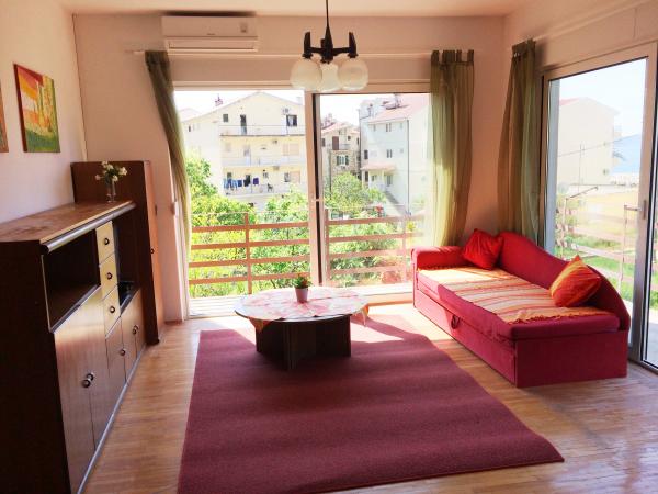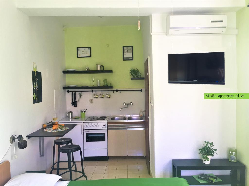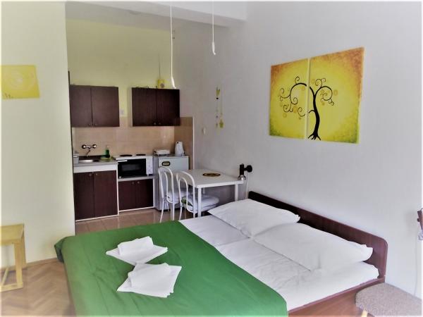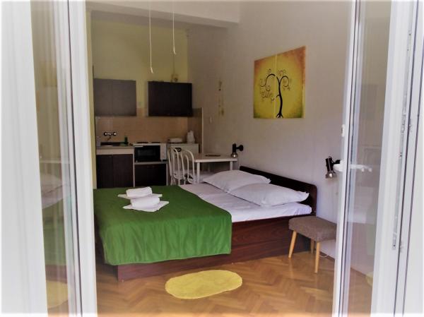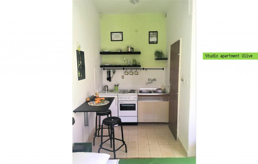 KAPETANOVA KUĆA (najam cijele kuće) • Oprema: flat SMART TV 32“, wi -fi, radio, air condition, roštilj, parking. • 2 spavaće sobe (3 2 kreveta) • Dnevni boravak (2 kreveta) • Kuhinja • 1 kupaonica (tuš, wc, umivaonik – sve odvojeno) • 2 terase Tradicionalna kamena dalmatinska kuća smještena je u samom centru Podgore i to u samom središtu zbivanja u blizini restorana, kafića i trgovina, a opet, obzirom da se nalazi u mirnoj uličici, zaštićena je od buke i znatiželjnih pogleda. U kući može boraviti četiri do sedam osoba. APARTMENTS GARDEN HOUSE (3 apartmana) Apartman Orange - 2 2 osobe Studio apartment Lemon - 2 osobe Studio apartman Olive - 2 osobe